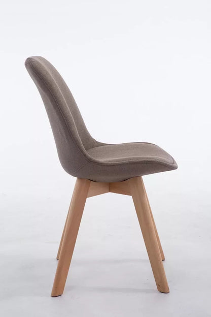 In And OutdoorMatch Eetkamerstoel Lue - Taupe stof - naturel houten poten - set van 1 - zithoogte 47 cm - modern