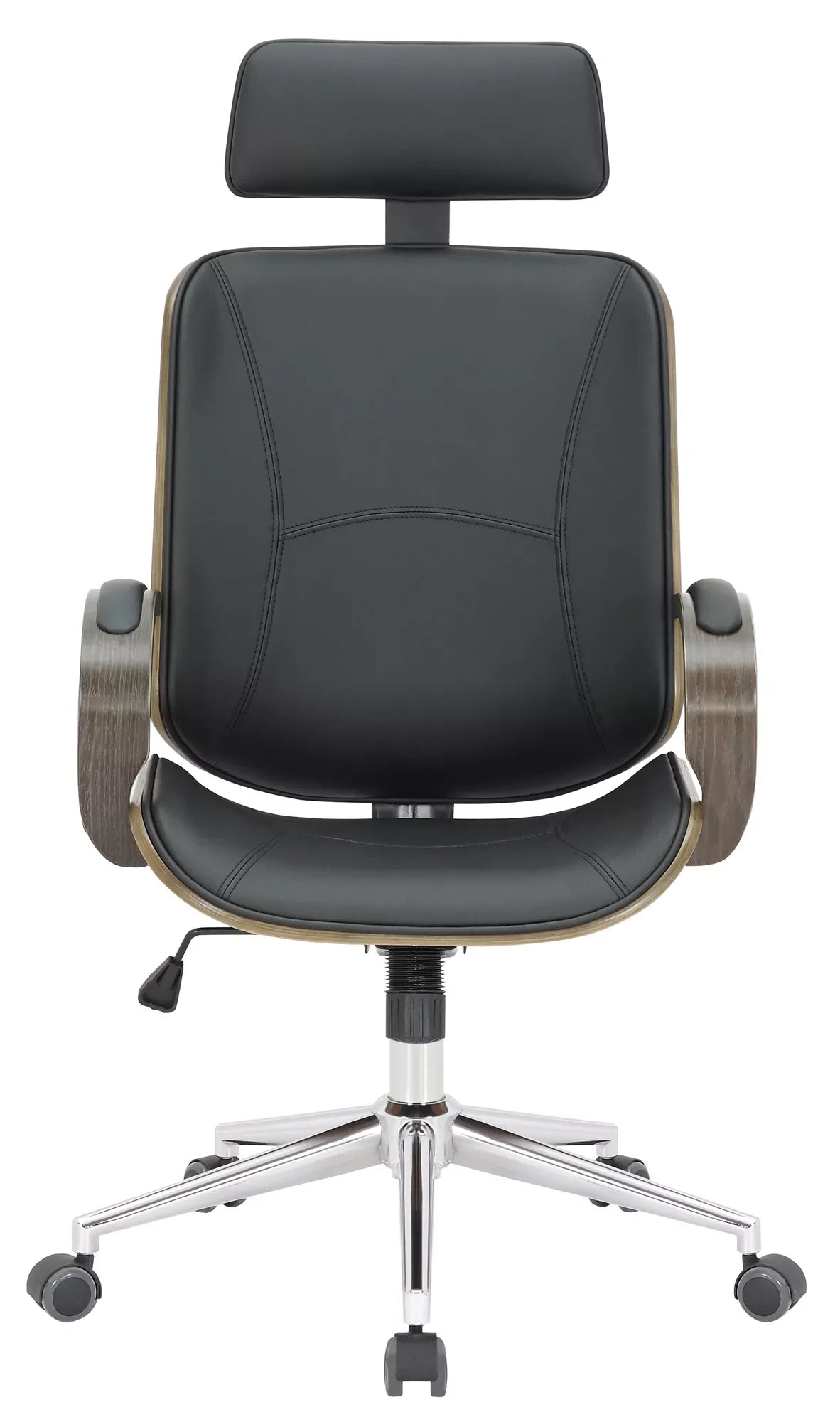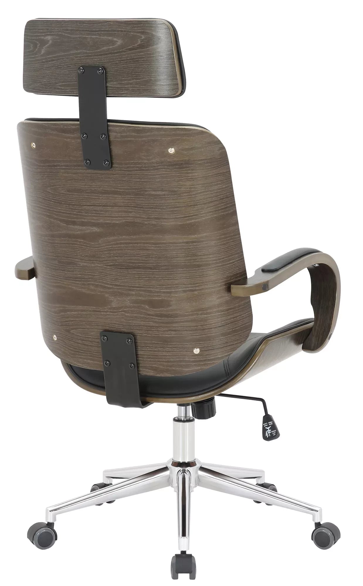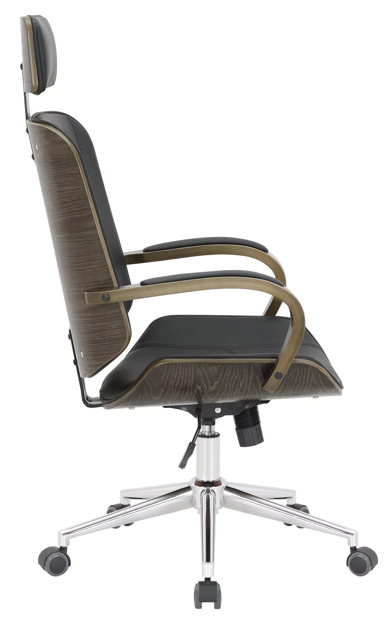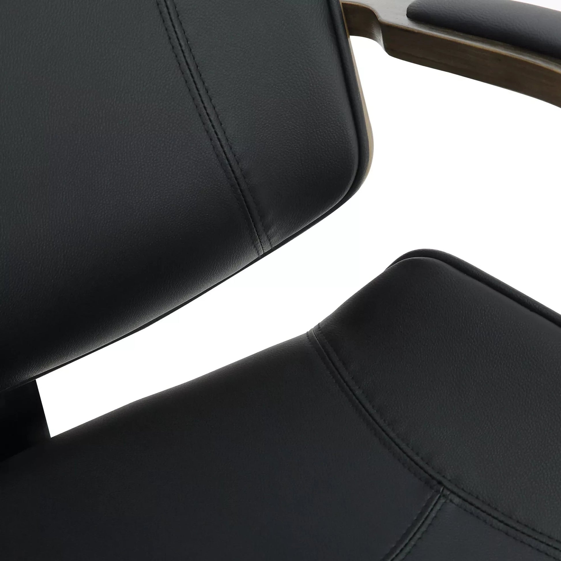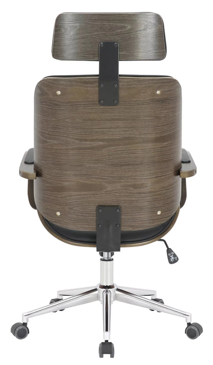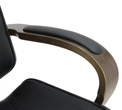 De directiestoel is een stijlvolle bureaustoel met een zeer hoogwaardige bekleding met kunstleren bekleding. Kunstleren hoezen hebben als voordeel dat ze elastisch zijn en weer rechttrekken als de belasting wordt weggenomen. Dit ziet er niet alleen mooier uit, maar verlengt ook de levensduur van de stoelhoes. Het gebogen houten frame maakt deze bureaustoel tot een absolute blikvanger en geeft hem een elegant design. Dankzij de traploos verstelbare zithoogte is ergonomisch zitten gegarandeerd en het ingebouwde schommelmechanisme zorgt voor meer bewegingsvrijheid. Het frame is gemaakt van metaal met chroomlook en is zeer stabiel. De bureaustoel staat veilig op vijf lichtlopende wielen. Of het nu harde vloeren of tapijten zijn, je rolt altijd gemakkelijk en losjes over de vloer.