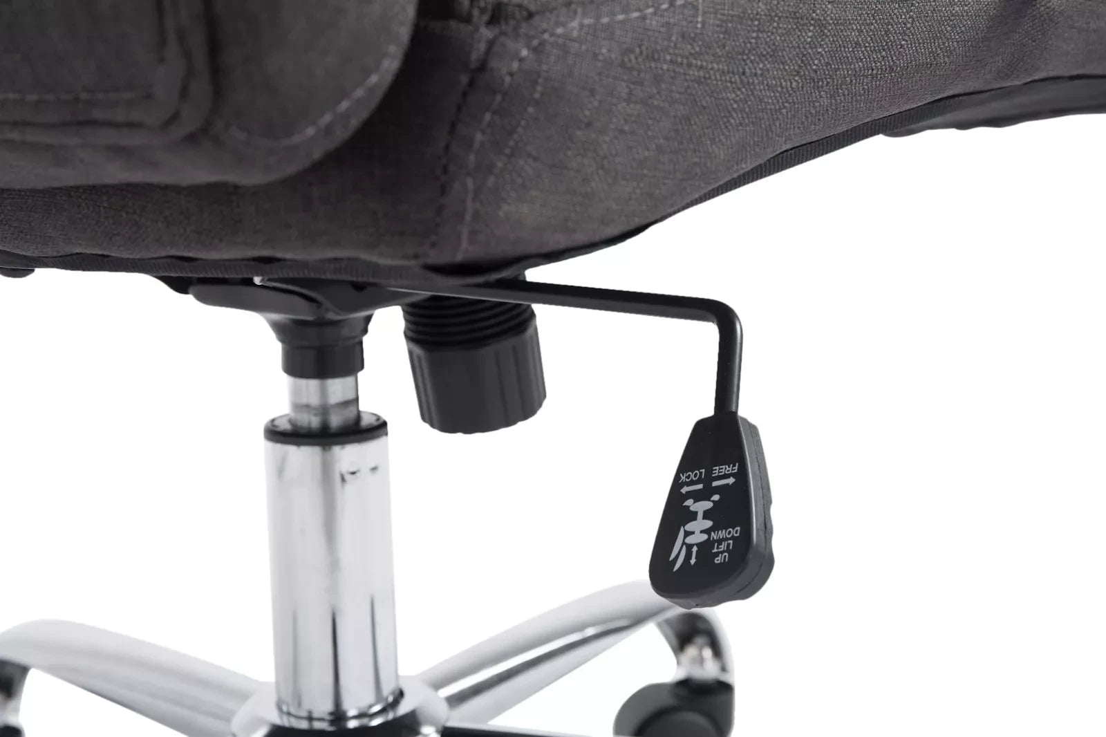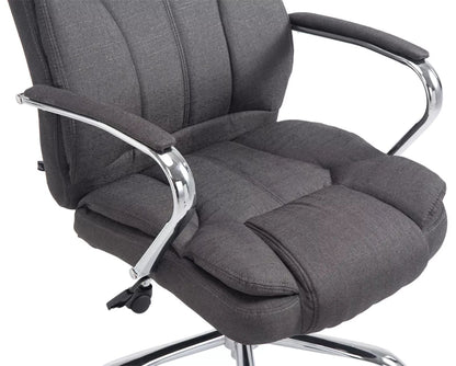 De directiestoel is een exclusieve bureaustoel met een zeer hoogwaardige bekleding en een moderne stoffenlook. De stoffen bekleding ziet er niet alleen mooi uit, maar is ook bijzonder robuust en onderhoudsvriendelijk. Een stabiel metalen frame zorgt bovendien voor een veilige stand. Dankzij een verstelbare zithoogte is bovendien ergonomisch zitten gegarandeerd. Bovendien is de zithoogte traploos te verstellen door middel van een hendel onder de zitting. Een ingebouwd schommelmechanisme zorgt voor meer bewegingsvrijheid. De bureaustoel staat stevig op vijf soepel lopende wielen. Of het nu harde vloeren of tapijten zijn, je rolt altijd gemakkelijk en losjes over de vloer.