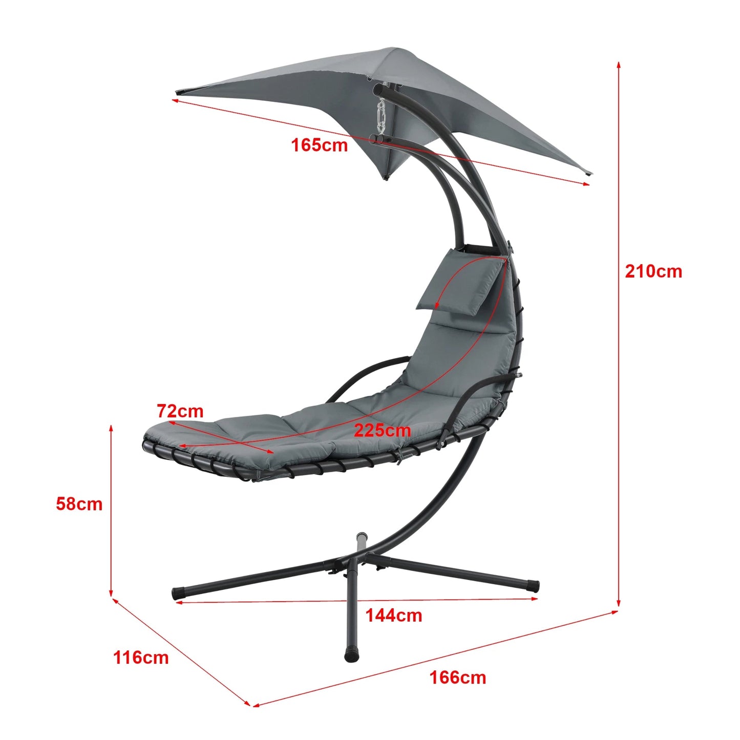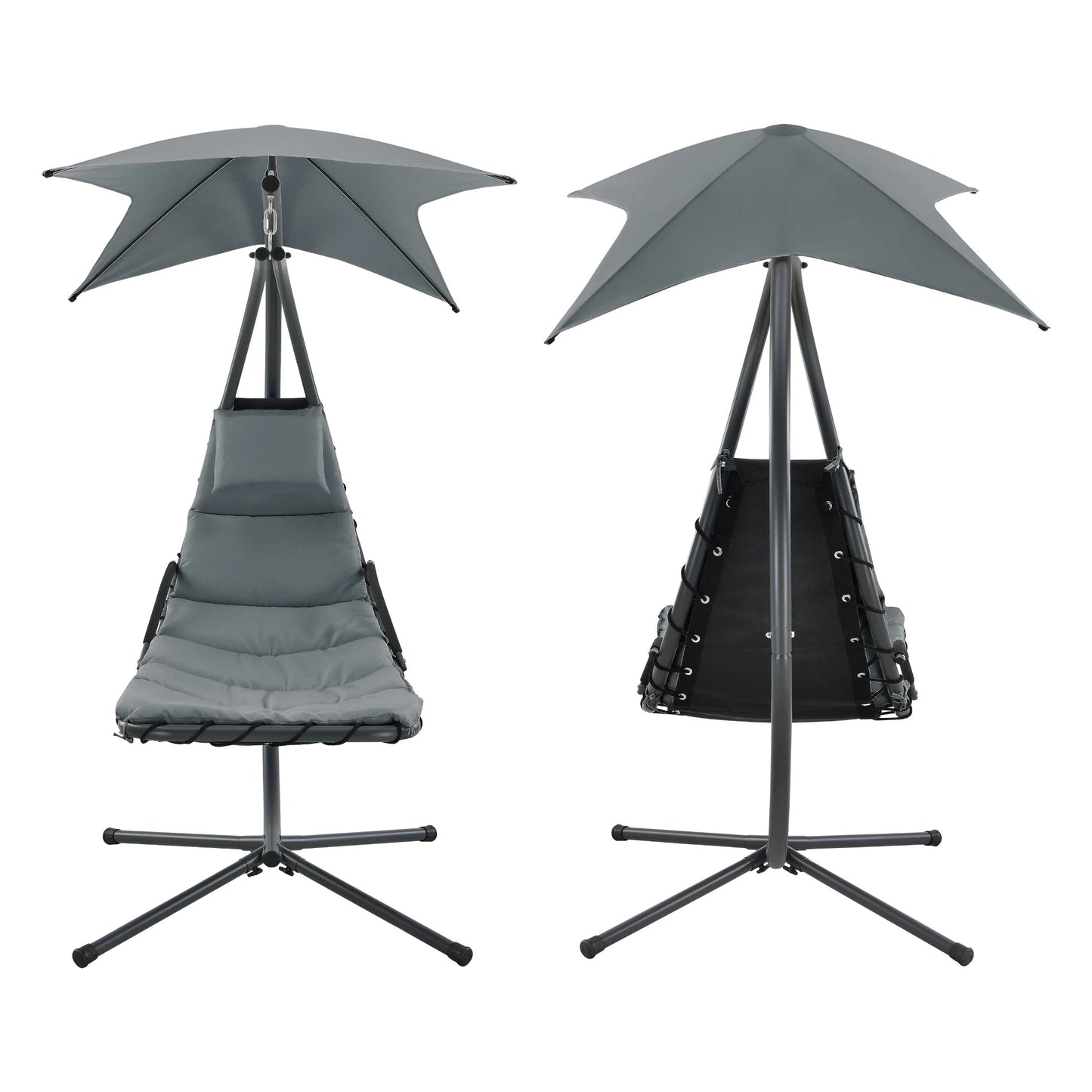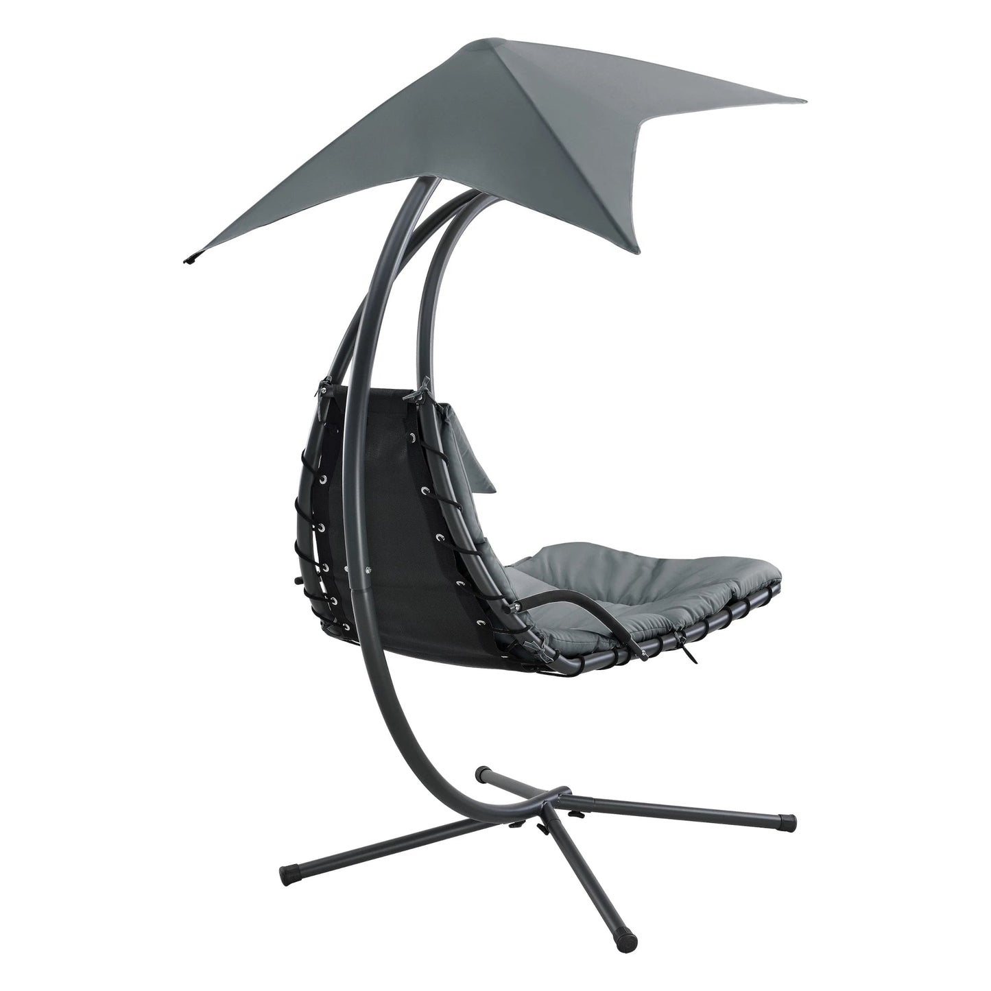In And OutdoorMatch Hangmat Hipolito - Met Luifel en Standaard - 166x116x210 cm - Grijs Zwart - Foam Padding