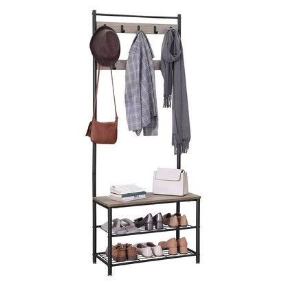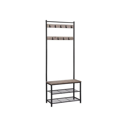 In And OutdoorMatch Kapstok staand Orland - Met schoenenrek opbergruimte - Grijs - 9 haken - Wandkapstok - Industrieel - 183cm