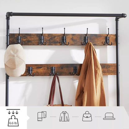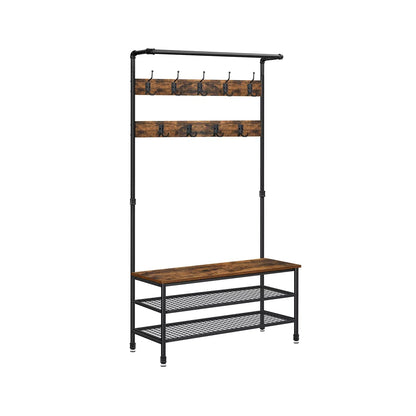 In And OutdoorMatch Kapstok Theresia - Met schoenenrek opbergruimte - Bruin/Zwart - 9 haken - Wandkapstok - Industrieel - 182cm