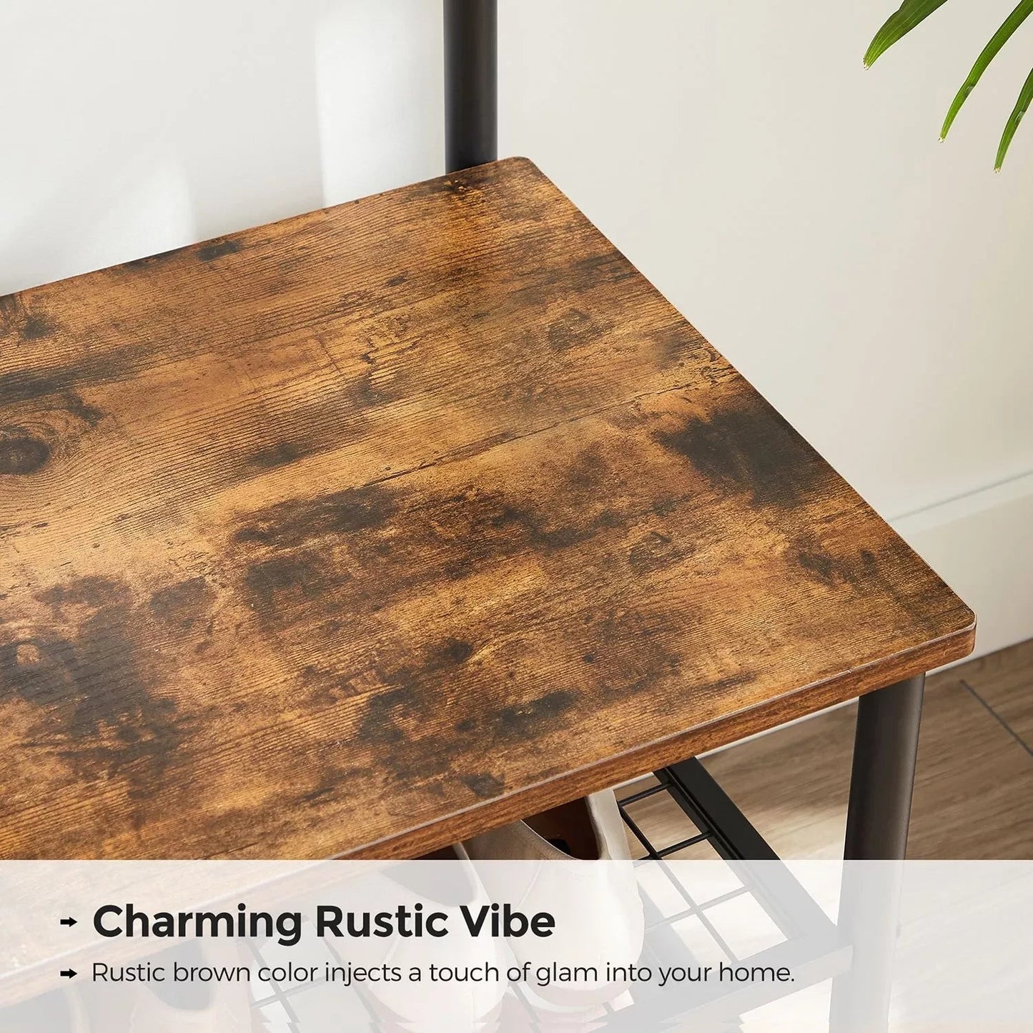 De ontwerpers van Inand Outdoormatch komen regelmatig met nieuwe ideeën voor praktische meubelen die je leven op een stijlvolle manier en tegen een betaalbare prijs een stukje comfortabeler maken. Zo geven ze u de mogelijkheid om van uw woning iets heel bijzonders te maken. Rustieke kledingkast in industrieel design Zo ontwierpen ze bijvoorbeeld de hierboven afgebeelde kledingstandaard met bank, die je voorziet van comfortabele zitplaatsen en 2 roosterplanken voor het opbergen van schoenen, evenals een kledingroede en 9 haken voor het opbergen van je sleutels, tassen of kleding. Ontworpen in een trendy industrieel design en voorzien van waterleidingelementen en rustieke, houten elementen, is de kapstok bijzonder geschikt voor grote of open ruimtes die nog niet te rommelig zijn met ander meubilair. Plaats het kledingrek bijvoorbeeld in de gang om jassen en jassen op te hangen en gemakkelijk je schoenen aan te trekken. Deze kledingkast mag echter niet het enige industriële designstuk in je huis zijn. Bekijk gerust ook de andere composities van InandOutdoormatch. Productdetails: - Kleur: vintage bruin-zwart - Materiaal: spaanplaat, staal - Afmeting: 100 x 41,5 x 182 cm (L x B x H) - Gewicht: 16,5 kg - Max. draagvermogen van de bank: 100 kg - Max. draagvermogen per roosterplank: 20 kg - Max. draagvermogen per haak: 3 kg Leveringsomvang: - 1 x kledingkast - 1 x accessoiretas - 1 x anti-tip - 1 x handleiding (DE, EN, FR, ES, IT) InandOutdoormatch Opmerkingen: - Gebruik Anti-kantel en bevestig het product aan de muur om de veiligheid van de kledingkast te garanderen. - Hang geen te zware voorwerpen aan de houten plank in het bovenste gedeelte of aan de haken.