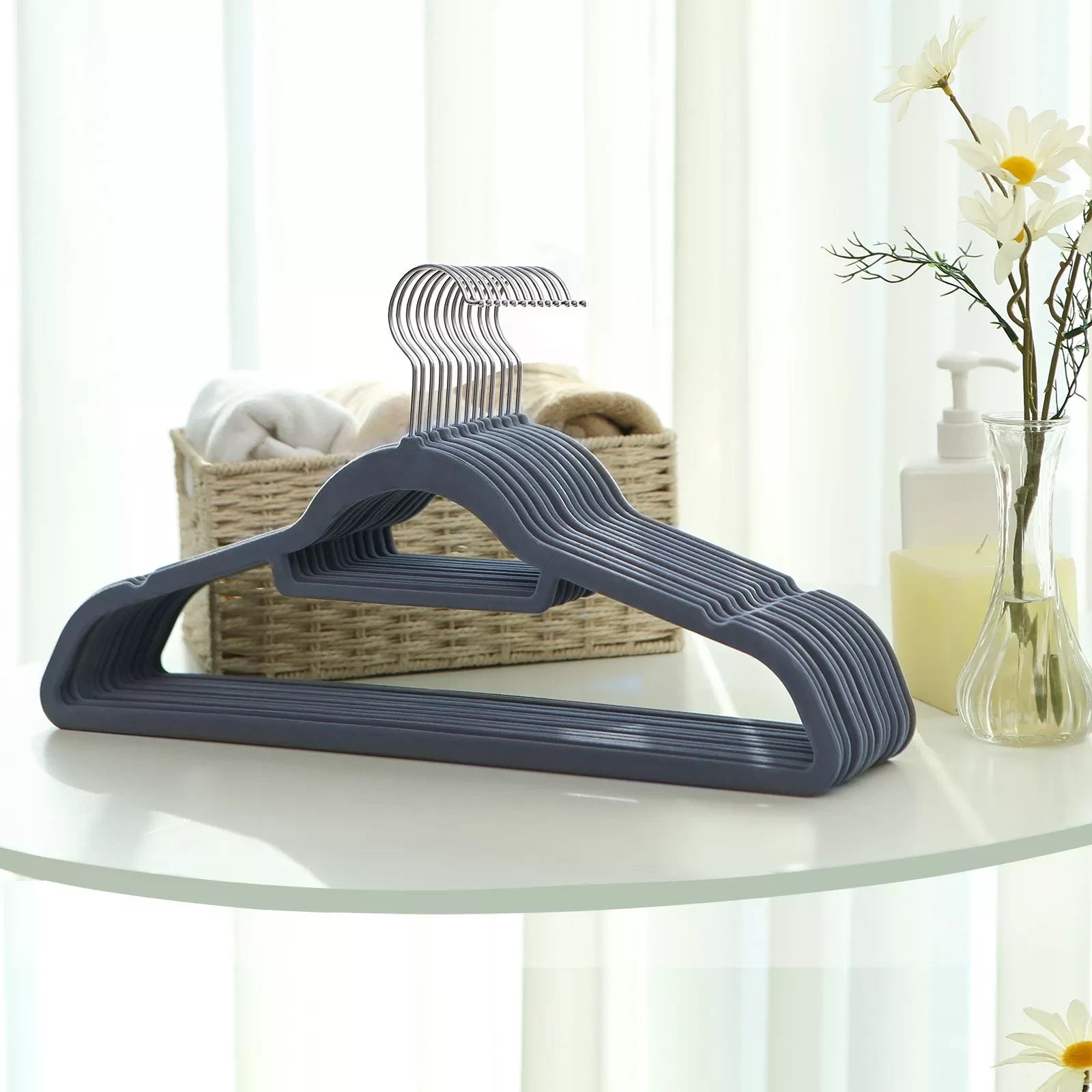 In And OutdoorMatch Kledinghangers Sherman - Fluweelgrijs - 20 stuks - Broekhangers - Antislip - Ruimtebesparend - 45x23