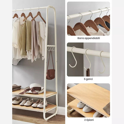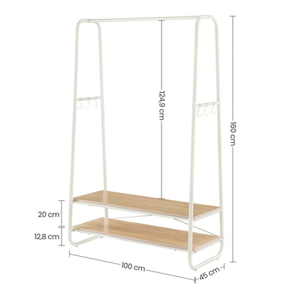 In And OutdoorMatch Kledingstandaard Tamara - Kapstok - Kledingkast - 2 planken - 6 S-vormige haken - Stalen Frame - Industrieel Design - Eiken/Wit
