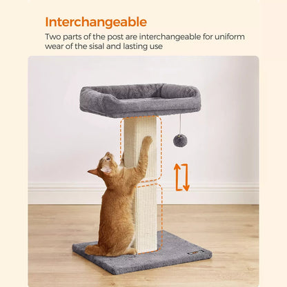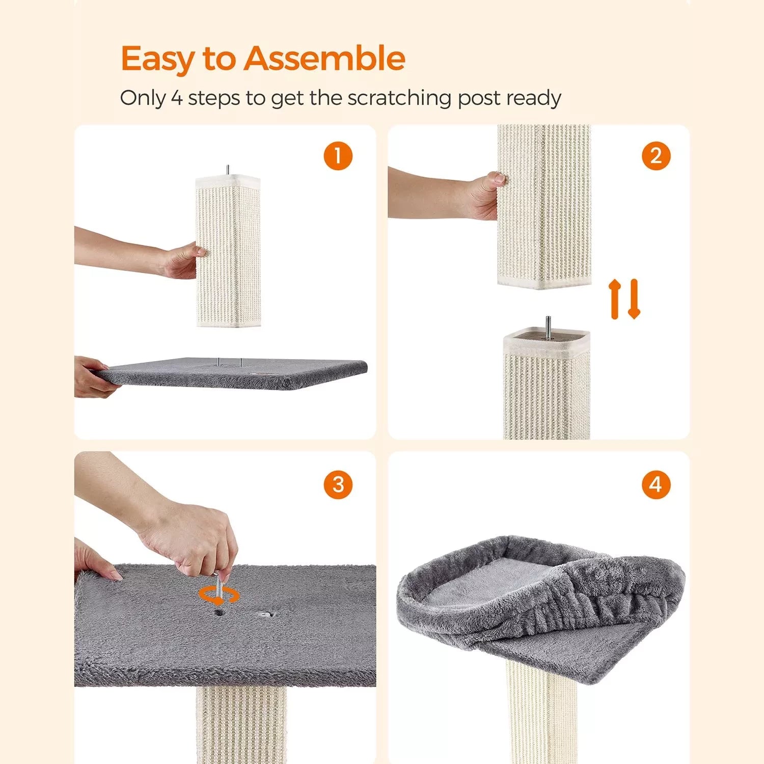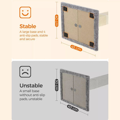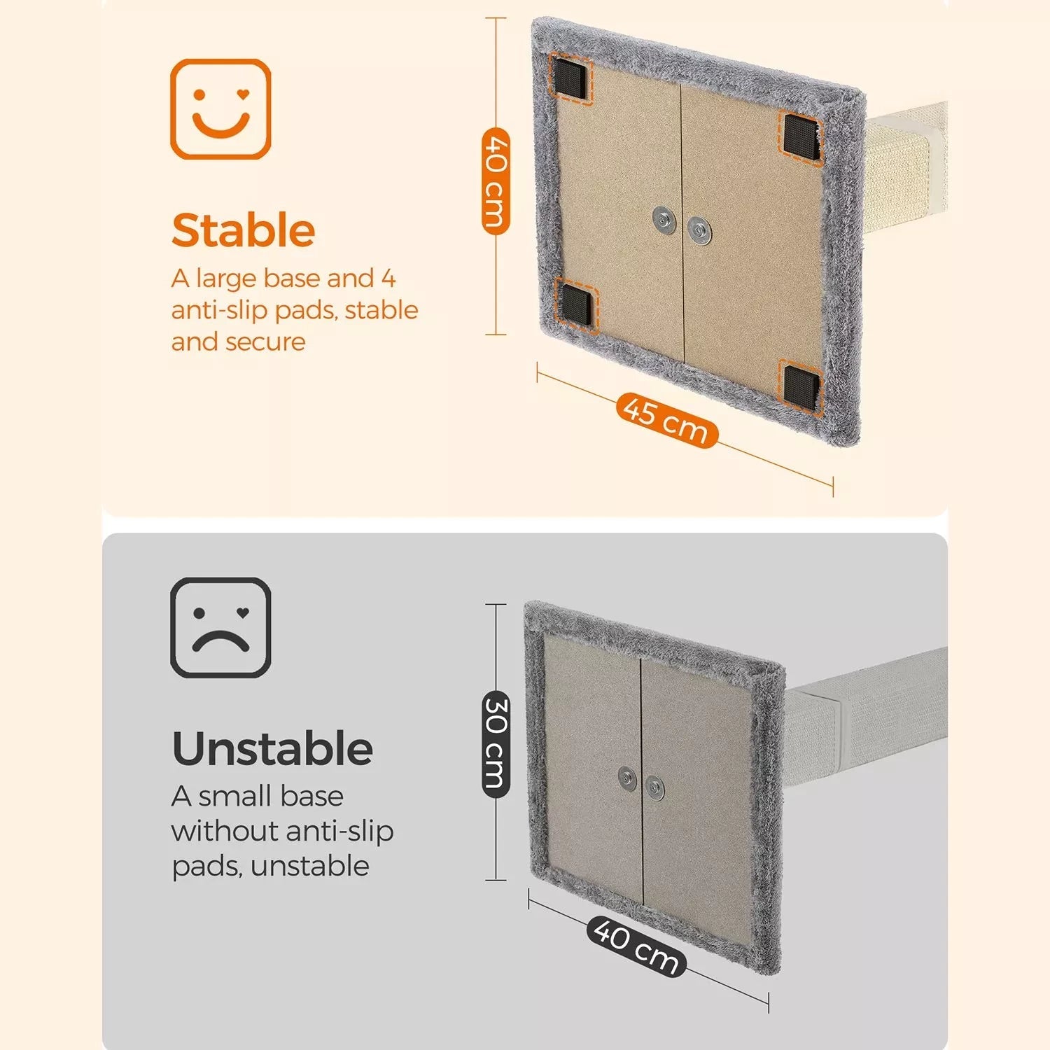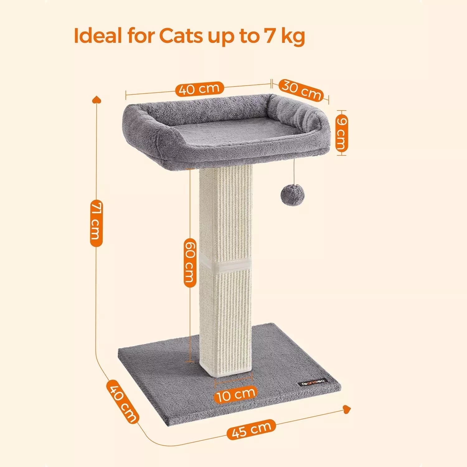 - In de creatieve werkplaats van InAndOutdoor Match springen twee kleine katjes rond, onderzoeken onze krabpalen persoonlijk en geven feedback van dieren. De ontwerpers van InAndOutdoor Matchc weten uit de eerste hand welke producten voldoen aan de behoeften van onze dierbare kittens. De voordelen van de krabpaal op een rij: - Duurzaam: Duurzame materialen voor langdurig gebruik. - Breed platform: Het ruime platform biedt ruimte voor katten om te dutten. - Gemakkelijk schoon te maken: het platform van de kattenkrabpaal is afneembaar om te wassen en kan worden gereinigd met een haarroller. - Stabiel: een brede basis en 4 antislipkussentjes houden de klimboom stabiel. - Eenvoudige montage: Dankzij de eenvoudige structuur is de montage eenvoudig. - Geschikte hoogte: met een hoogte van 71 cm is het ideaal voor katten om zich uit te strekken tijdens het krabben. - Inclusief bal: Een hangende bal zorgt voor extra speelplezier. Productdetails: - Kleur: lichtgrijs - Materiaal: spaanplaat, pluche, sisalmat - Afmetingen: 45 x 40 x 71 cm (L x B x H) - Gewicht: 4,5 kg Leveringsomvang: - 1 x kattenkrabpaal - 1 x instructies
