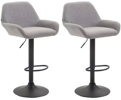 De barkruk Sabryna heeft een stoffen bekleding. De dikke vulling en de hoge rugleuning bieden je rug optimale ondersteuning. Het matzwarte metalen frame geeft de barkruk de nodige stabiliteit. De hoogte van de barkruk is traploos te verstellen door middel van een gaffellift. De geïntegreerde voetsteun zorgt voor een comfortabele zithouding, zelfs over een langere periode. Onder de bodemplaat zit een vloerbeschermer die uw vloer beschermt tegen lelijke krassen. De barkruk is verkrijgbaar in maar liefst 6 verschillende kleuren.