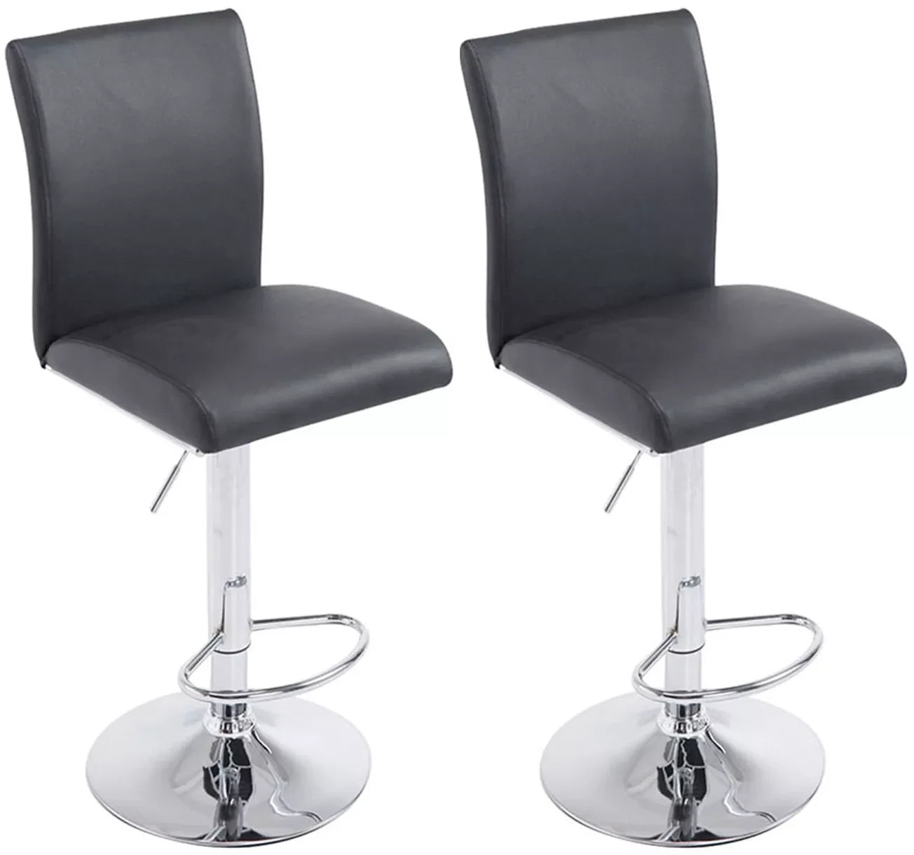 In And OutdoorMatch Luxe Barkruk Sydnee - Zwart - Chroom - Modern Design - Set van 2 - Rugleuning - Voetensteun - Voor Keuken en Bar - Gestoffeerde Zitting - Imitatie Leder