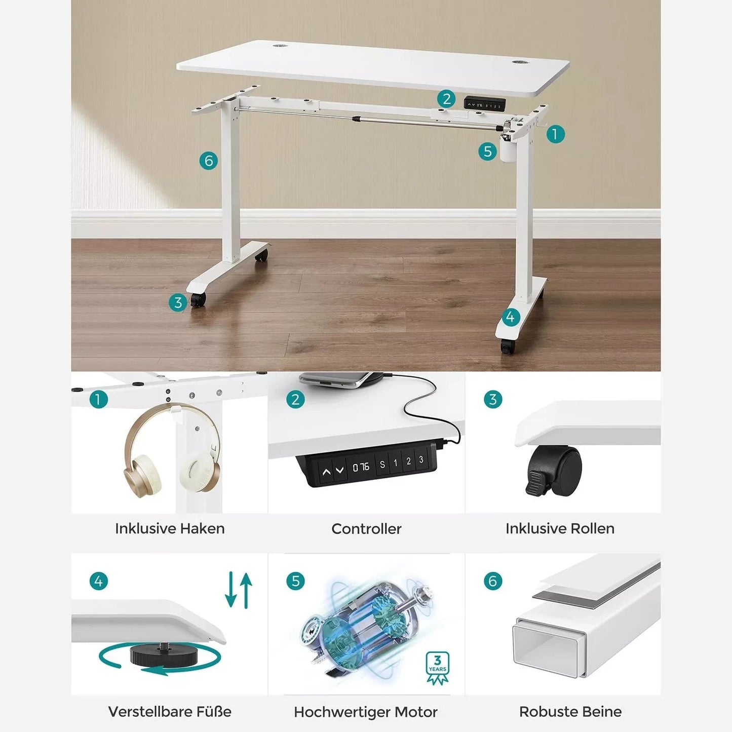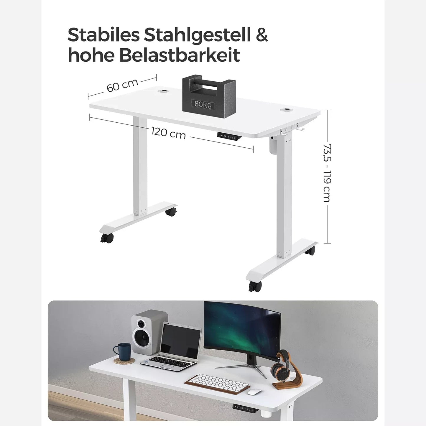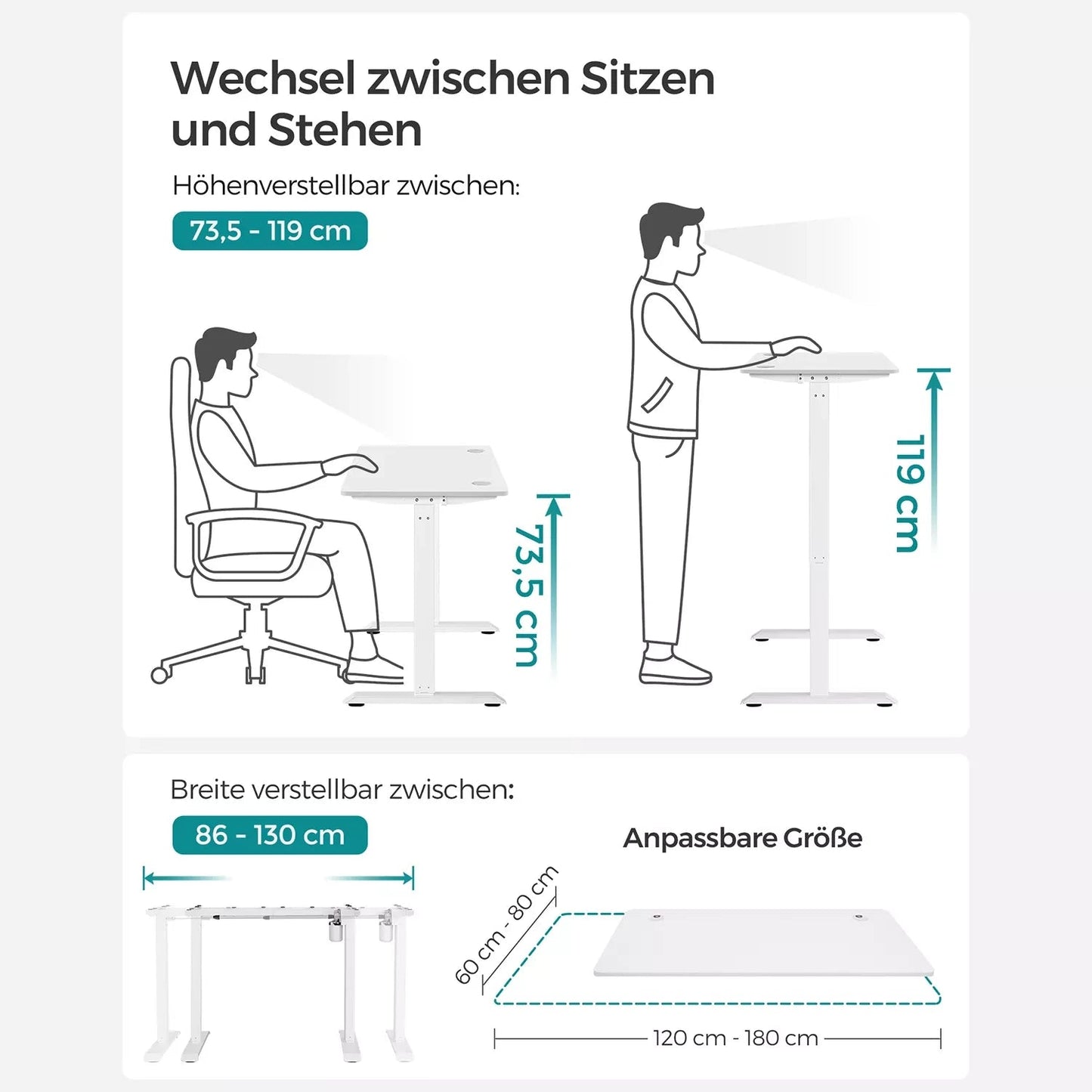 In And OutdoorMatch Luxe Elektrisch Bureau Milford - Zit-sta bureau - Wit - Memory functie met 3 hoogtes - In hoogte verstelbaar 71-117cm - 80kg draagvermogen - 60x120cm