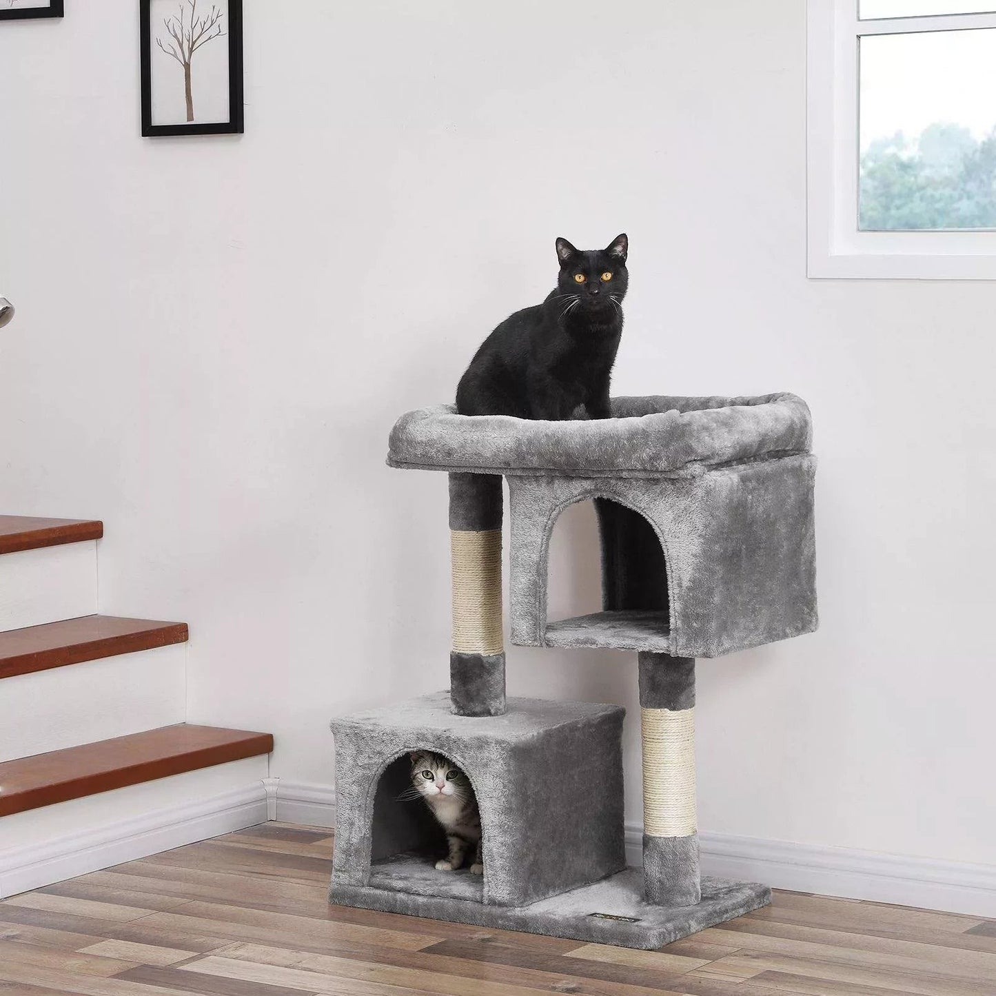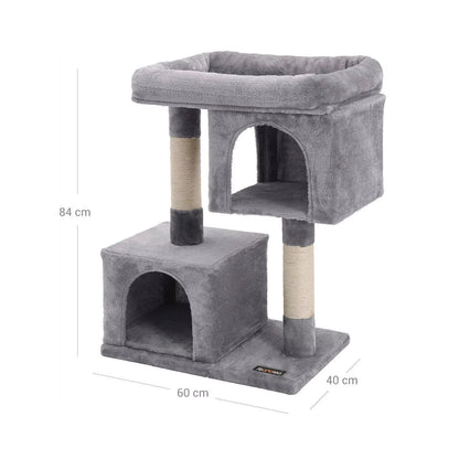 Productdetails: - Kleur: lichtgrijs - Materiaal: CARB-gecertificeerde spaanplaat, pluche, sisal - Productafmetingen: 60 x 40 x 84 cm (B x D x H) - Gewicht: 10,9 kg Leveringsomvang: - 1 x krabpaal - 1 x handleiding (DE, EN, FR, ES, IT) Inenoutdoormatch Opmerkingen: - Plaats de krabpaal op een vlakke ondergrond in een hoek van de kamer. - Plaats dit product niet in een vochtige omgeving. - Kinderen zijn Het is niet toegestaan om op de krabpaal te klimmen of ermee te spelen. - Wij raden u aan deze toren aan de muur te bevestigen met behulp van de meegeleverde anti-kantelbeugels.