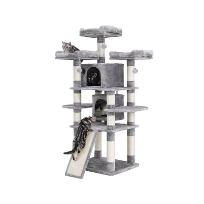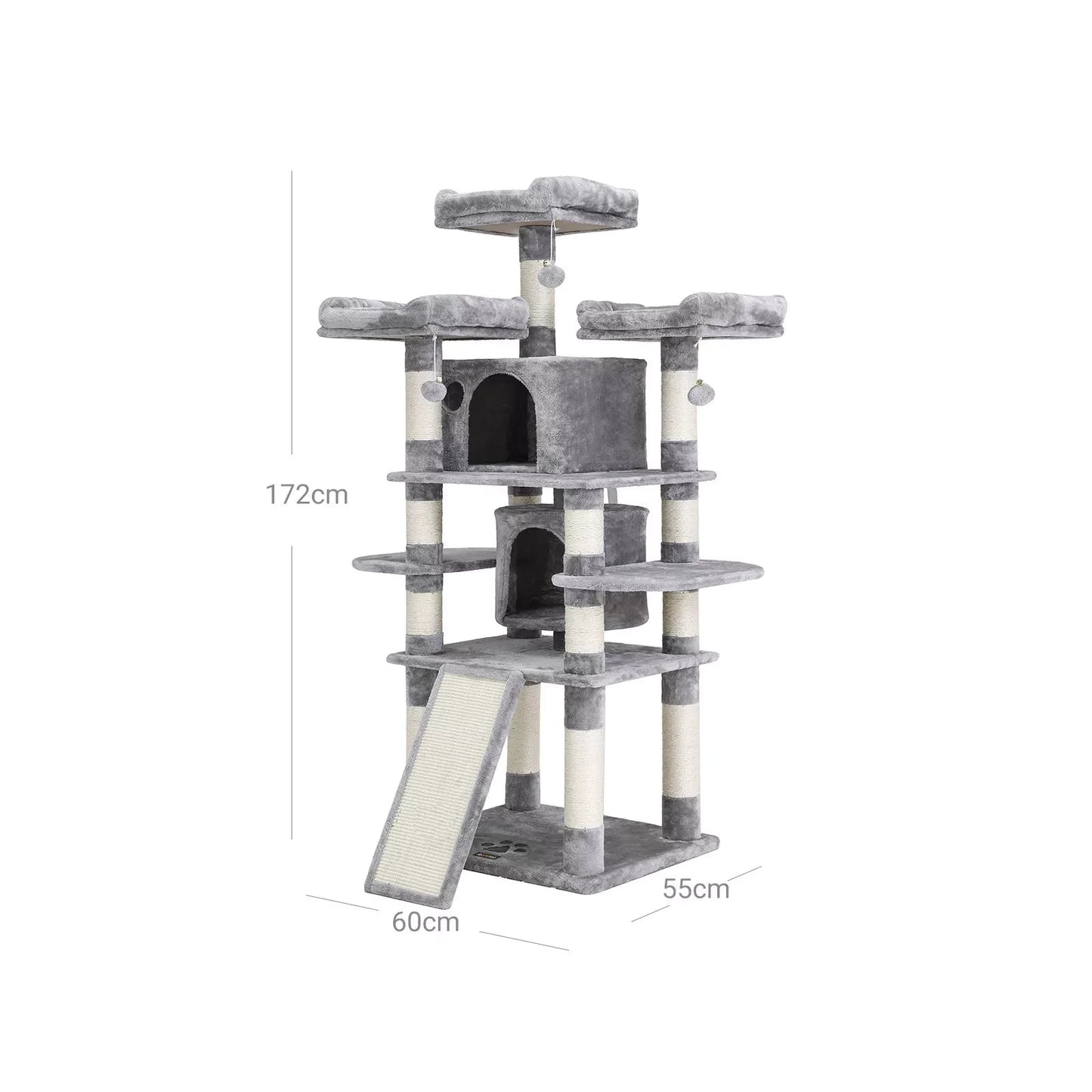 Productdetails: - Kleur: lichtgrijs - Materiaal: spaanplaat, pluche, sisal - Afmetingen: 60 x 55 x 172 cm (L x B x H) - Gewicht: 29,1 kg Leveringsomvang: - 1 x krabpaal - 1 x handleiding (DE, EN, FR, ES, IT)