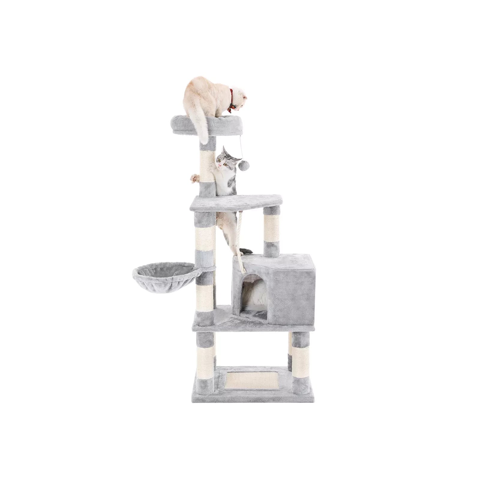 Middelgrote krabpaal om te spelen en te loungen. De ideale krabpaal voor katten die graag ravotten en in een gezellig bed liggen om te loungen. Ligplekken bekleed met pluche zorgen voor een comfortabel ligoppervlak, dat ook is ontworpen om te ravotten. Multifunctionele krabpaal Met veel krabmogelijkheden op elke stang en bodemplaat, een grot, een hanggedeelte en ligplekken, zijn er vele manieren waarop uw kat optimaal van de krabpaal kan genieten. Bovendien is er permanent een klassiek visspel bijgevoegd, zodat uw kat zich kan uitleven in haar speelinstinct. Met de bijgevoegde montagehandleiding zet je de krabpaal snel en veilig op.