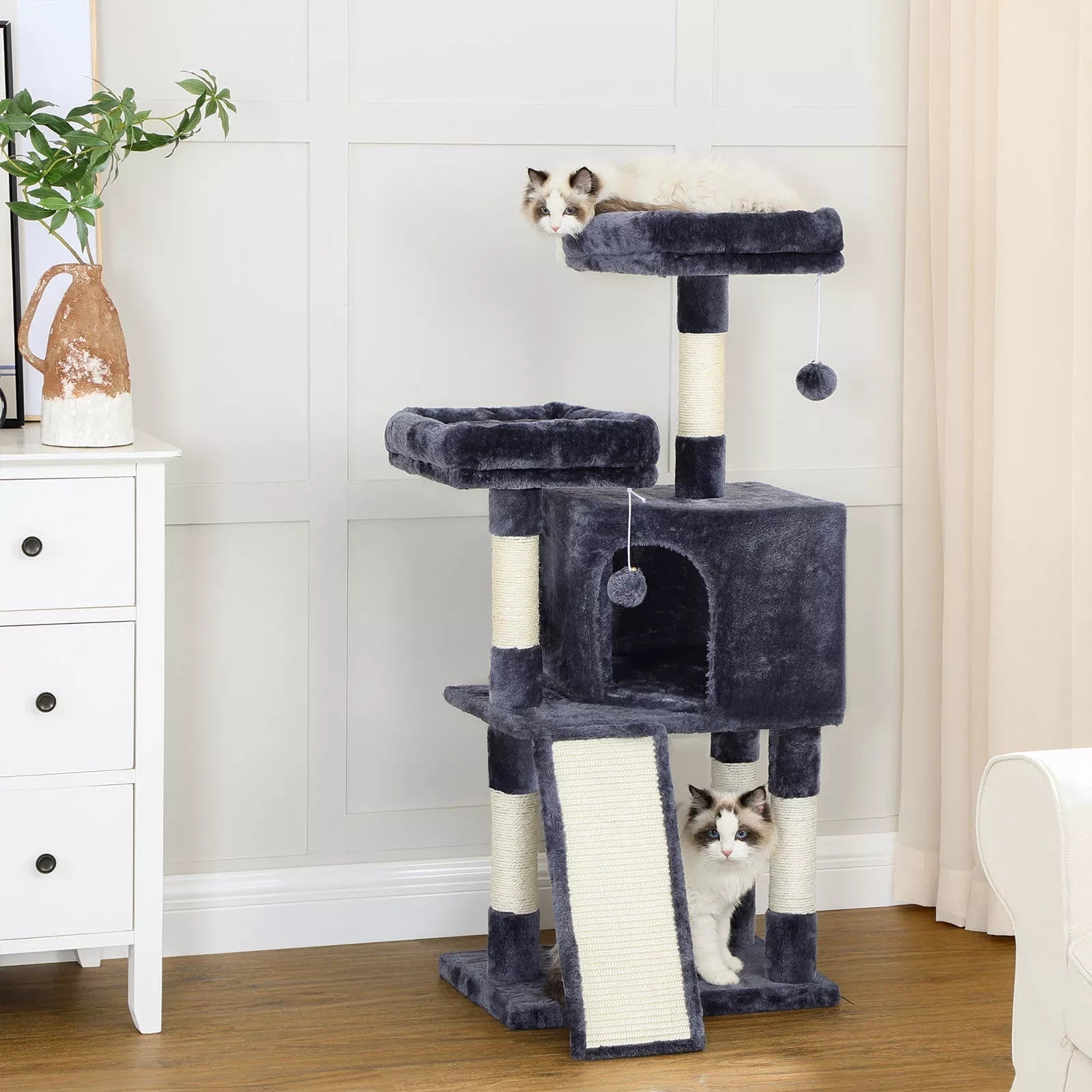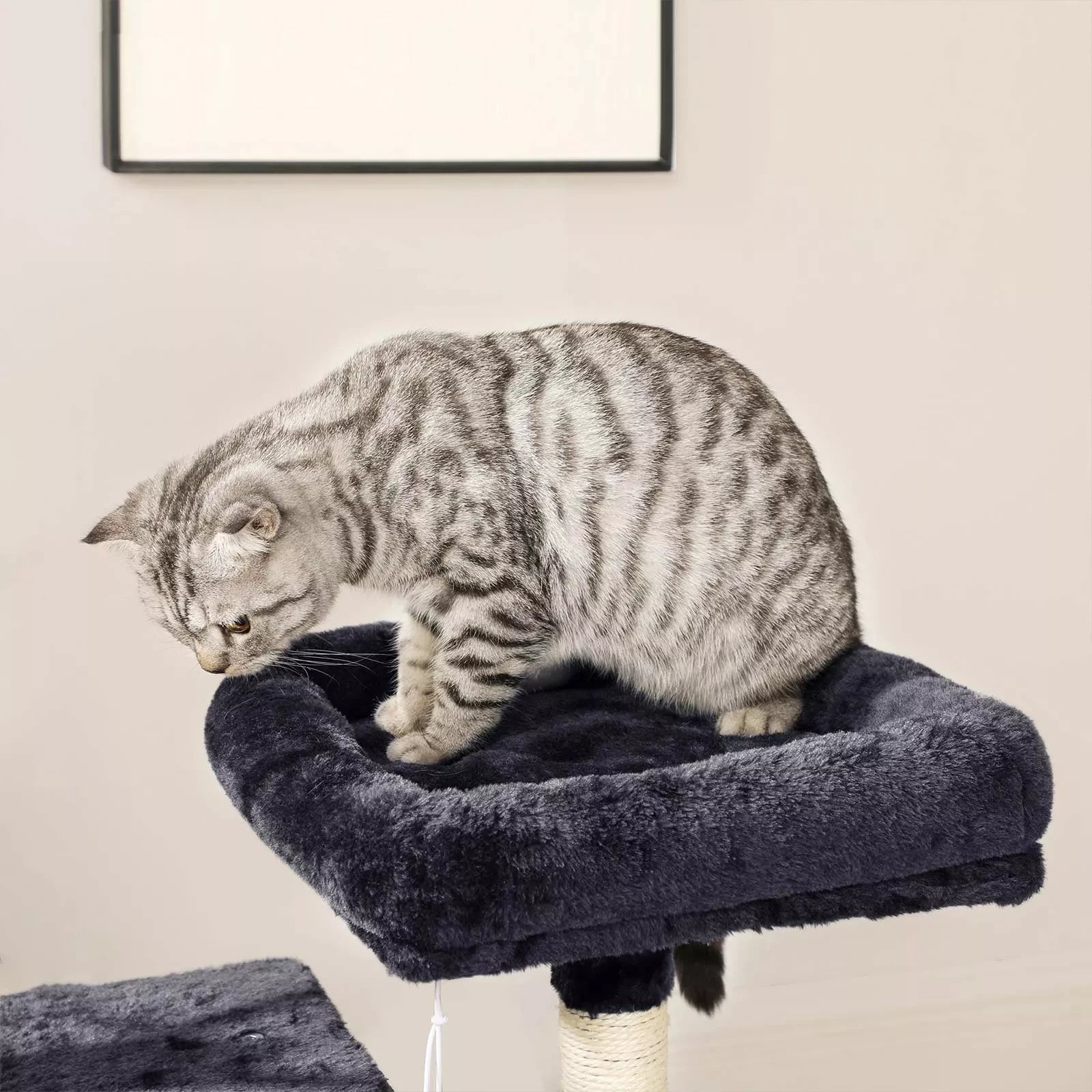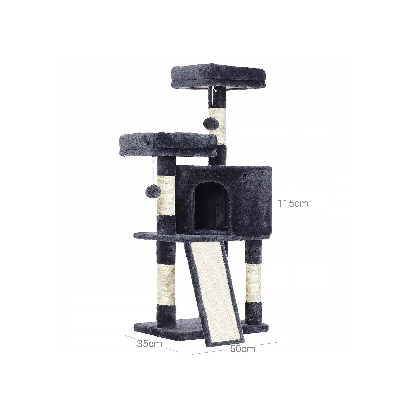 InAndOutdoorMatch Ruimtebesparende krabpaalDeze krabpaal van 50 x 35 x 115 cm is geschikt voor kleine appartementen waar één of meerdere energieke katten rondscharrelen. Verwen ze, ondanks de beperkte ruimte, met een gezellig hol en 2 gewatteerde platforms. Klauwen slijpen, dutje doen, ontspannen, strekken, spelen... Elke kat heeft een favoriet plekje op onze krabpaal. En hoe zit het met uw kat? In de creatieve workshops bij InAndOutdoorMatch springen twee schattige katjes rond, onderzoeken alle krabpalen persoonlijk en geven hun dier er feedback op. Zo ontdekken de ontwerpers van InAndOutdoorMatch uit de eerste hand of uit de eerste hand of de producten voldoen aan de eisen van verwende snorhaardragers Het slijpen van de klauwen 1 grote krabplank die tevens dienst doet als trap Opbouw in fasen gerangschikt voor gemakkelijk op- en afstappen 2 haarballen voor extra speelplezier .3 kg Leveringsomvang: 1 x krabpaal 1 x kantelbeveiliging 1 x handleiding (DE,EN,FR,ES,IT)InAndOutdoorMatch Opmerkingen:Als het kattenhuis beschadigd is, repareer of vervang het dan op tijd om vermijd letsel door beschadigde onderdelen. Als uw katten op de haarbal of het elastiekje kauwen, verwijder dan het speeltje onmiddellijk en bewaar het op een plaats waar uw kat er niet bij kan.