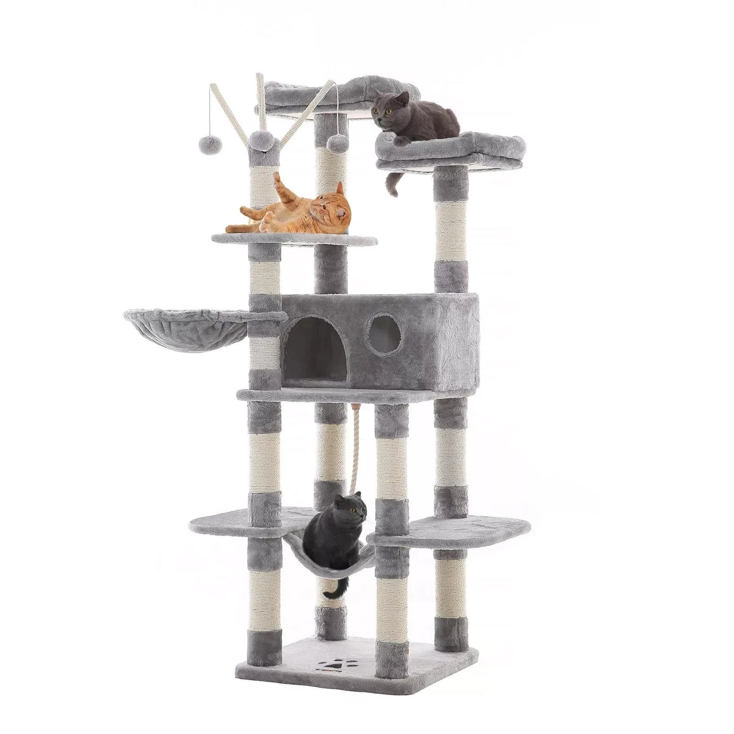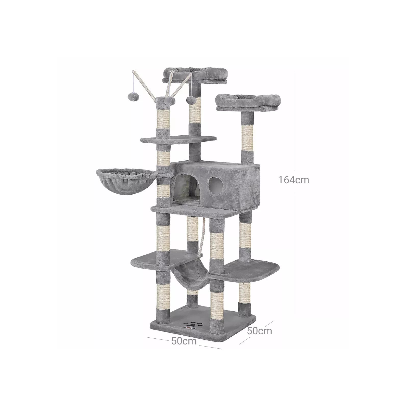 In de creatieve workshops van InAndOutdoorMatch springen twee schattige katjes rond, onderzoeken alle krabpalen persoonlijk en geven hun dier er feedback op. Zo ontdekken de ontwerpers van InAndOutdoorMatch uit de eerste hand of uit de eerste hand of de producten voldoen aan de eisen van verwende snorhaardragers. De highlights van deze krabpaal op een rij: - behoorlijk groot; biedt plaats aan 2 katten, die elk niet meer dan 7 kg wegen - 2 goed gevoerde kijkplatforms met opstaande randen om te ontspannen - Comfortabel nestje om verstoppertje te spelen en te ontspannen - Stevige ligstoel en hangmat om in te dutten - Met hout versterkte basis en anti-tip voor meer stabiliteit en veiligheid - 3 afneembare stokken met haarballen en een speeltouw voor meer speelplezier - Hoes van stevig, zacht pluche Productdetails: - Kleur: lichtgrijs - Materiaal: spaanplaat, pluche, sisal - Afmeting: 50 x 50 x 164 cm (L x B x H)- Gewicht: 18 kg Leveringsomvang:- 1 x krabpaal- 1 x kantelbeveiliging- 1 x montageaccessoires- 1 x handleiding (DE, EN, FR, ES, IT) InAndOutdoorMatch Opmerkingen: - Als de knuffelgrot of de hoes beschadigd zou zijn, neem dan onmiddellijk contact op met onze klantenservice voor vervanging of een andere oplossing om letsel door kapotte onderdelen te voorkomen. - Verwijder de vachtkussens onmiddellijk als uw kat erop kauwt.