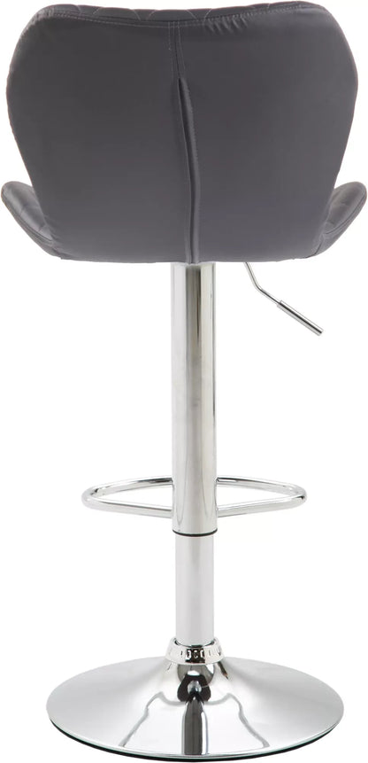 In And OutdoorMatch Moderne Barkruk Everardo - Grijs - Chroom - Luxe Design - Rugleuning - Voetensteun - Voor Keuken en Bar - Gestoffeerde Zitting - Imitatie Leder