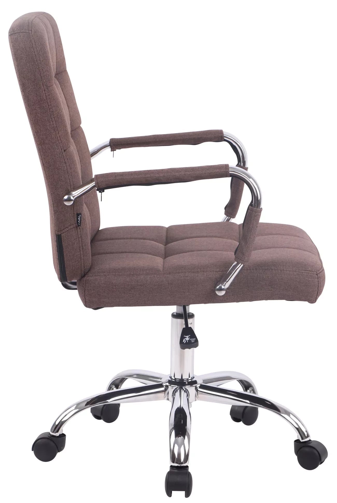 De stof overtuigt door zijn moderne design en solide afwerking. De stoffen bekleding met de prachtige siernaden ziet er niet alleen elegant uit, maar is ook bijzonder robuust en onderhoudsvriendelijk. De zithoogte is traploos verstelbaar met de hendel onder de zitting. Dit garandeert een hoog comfortniveau bij langdurig werken. Bovendien belooft het metalen frame met chroomlook een lange levensduur. De bureaustoel staat veilig op vijf soepel lopende wielen. Of het nu harde vloeren of tapijten zijn, je rolt altijd gemakkelijk en losjes over de vloer.