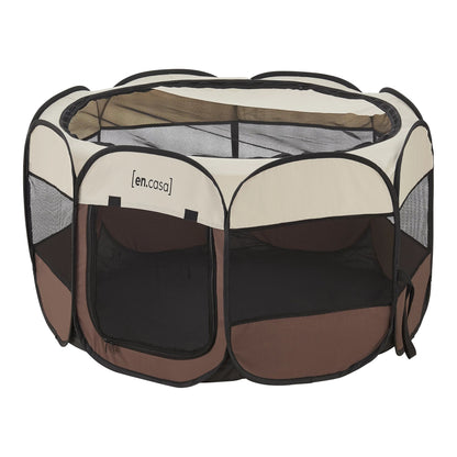 In And OutdoorMatch Opklapbench Mathilda - 43x114x114 cm - Voor Dieren - Bruin en Crème - Hondenbench - Kattenbench - Dierenbench