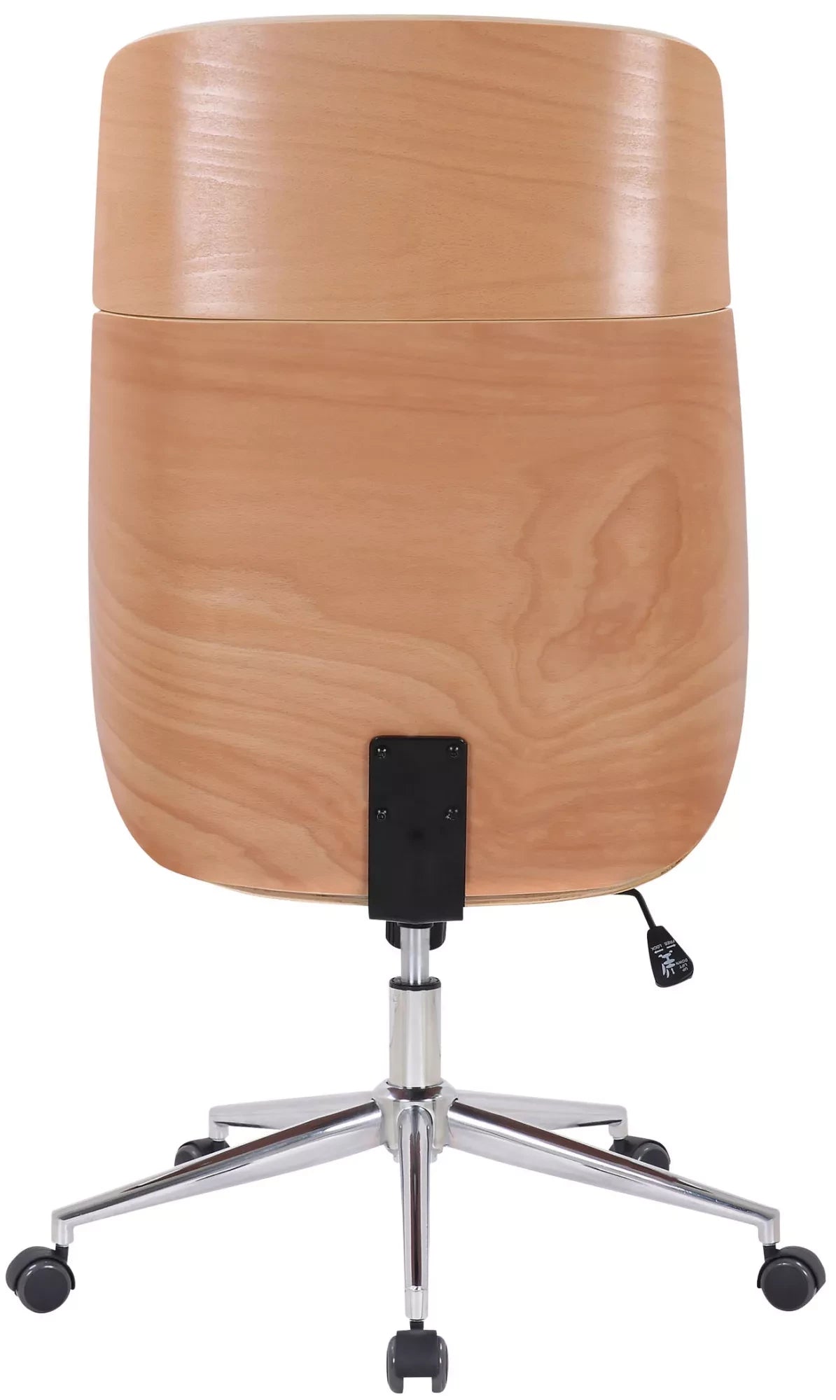 Deze Deondre bureaustoel overtuigt niet alleen door zijn moderne uitstraling, ook op het gebied van comfort houdt niemand hem voor de gek. De draaistoel is comfortabel gestoffeerd en heeft een kunstleren bekleding, waardoor hij bijzonder onderhoudsvriendelijk is. Dankzij de traploze hoogteverstelling en het schommelmechanisme is comfortabel zitten ook gedurende meerdere uren mogelijk. De stabiliteit wordt gegarandeerd door het metalen frame met een chromen afwerking. Dankzij de vijf lichtlopende wielen rol je gemakkelijk en losjes over de vloer – of het nu op harde vloeren of tapijten is. Het elegante chromen frame en de mix van kunstleer en hout geven het geheel net dat beetje extra en ronden het ontwerp af.