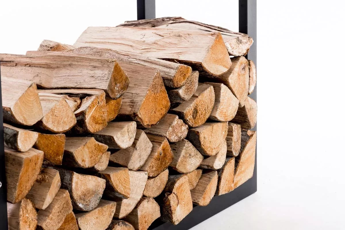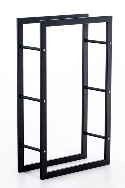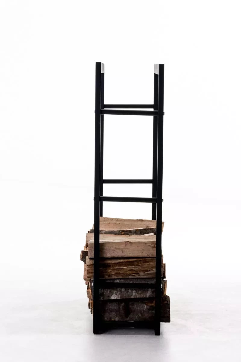 In And OutdoorMatch Staand haardhoutrek Oran - Zwart Staal - Voor binnen en buiten - 25x80x100cm - Stalen houtopslag