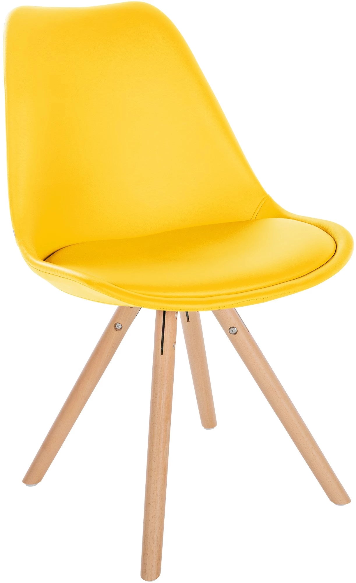 In And OutdoorMatch Stoel Burton - Geel en Hout - Kunstleer - Comfortabele zit - Hoogwaardige bekleding - Stijlvolle stoel - Klassieke uitstraling