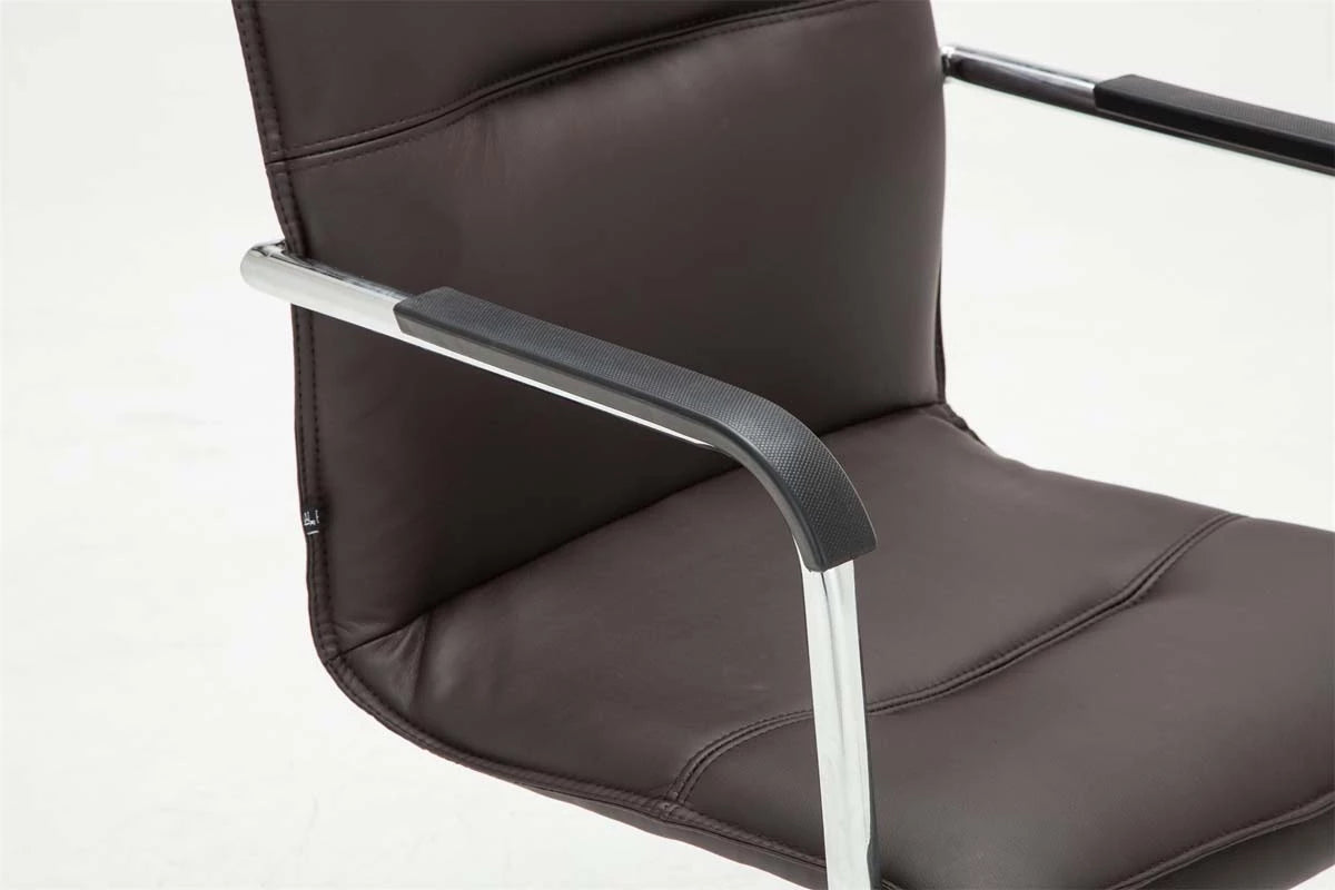 De Erma bezoekersstoel geeft elke ruimte een exclusieve uitstraling. De comfortabele stoel overtuigt niet alleen door zijn uitstekende ziteigenschappen, maar ook door zijn moderne design. Omdat hij vrij kan zwaaien, past hij zich precies aan de beenlengte en het gewicht van de zittende persoon aan. Dankzij de ergonomisch gevormde zitting en comfortabele armleuningen is zelfs langer zitten niet vermoeiend. De comfortabele vulling is bedekt met kunstleer. De Erma bezoekersstoel ziet er met zijn robuuste metalen frame geweldig uit voor elke gelegenheid.