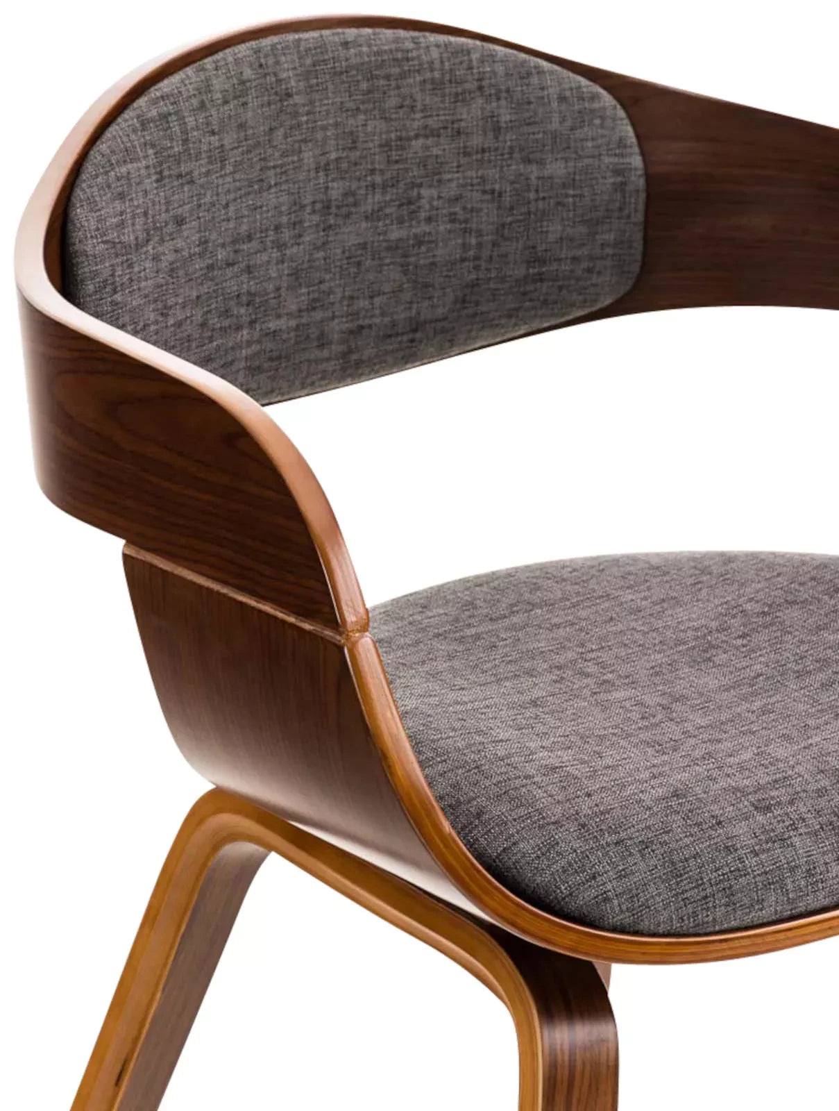 In And OutdoorMatch Stoel Roslyn - Eetkamerstoel - Donkerhout - Grijze stof - Houten poten - set van 2 - Zithoogte 48cm - deluxe