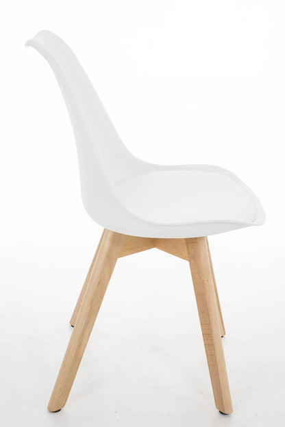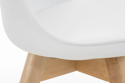 De zitschaal is gemaakt van stevig kunststof. De aangename en comfortabele vulling met kunstleren bekleding zorgt ervoor dat u ook gedurende langere tijd comfortabel kunt zitten. Op het 1,20 meter hoge houten onderstel ziet deze bezoekersstoel er bij elke gelegenheid geweldig uit. Het model is precies goed als u zich graag modern wilt inrichten.