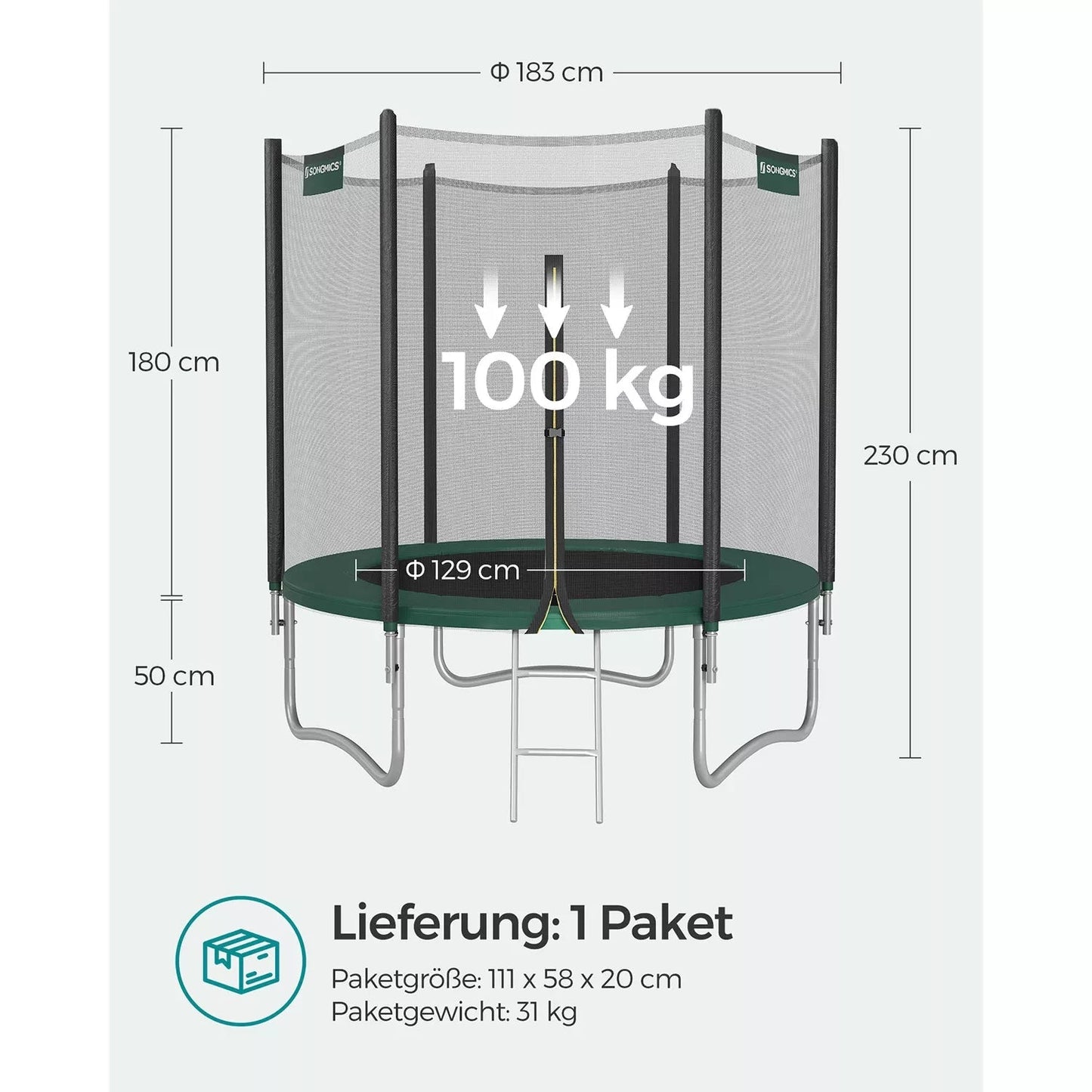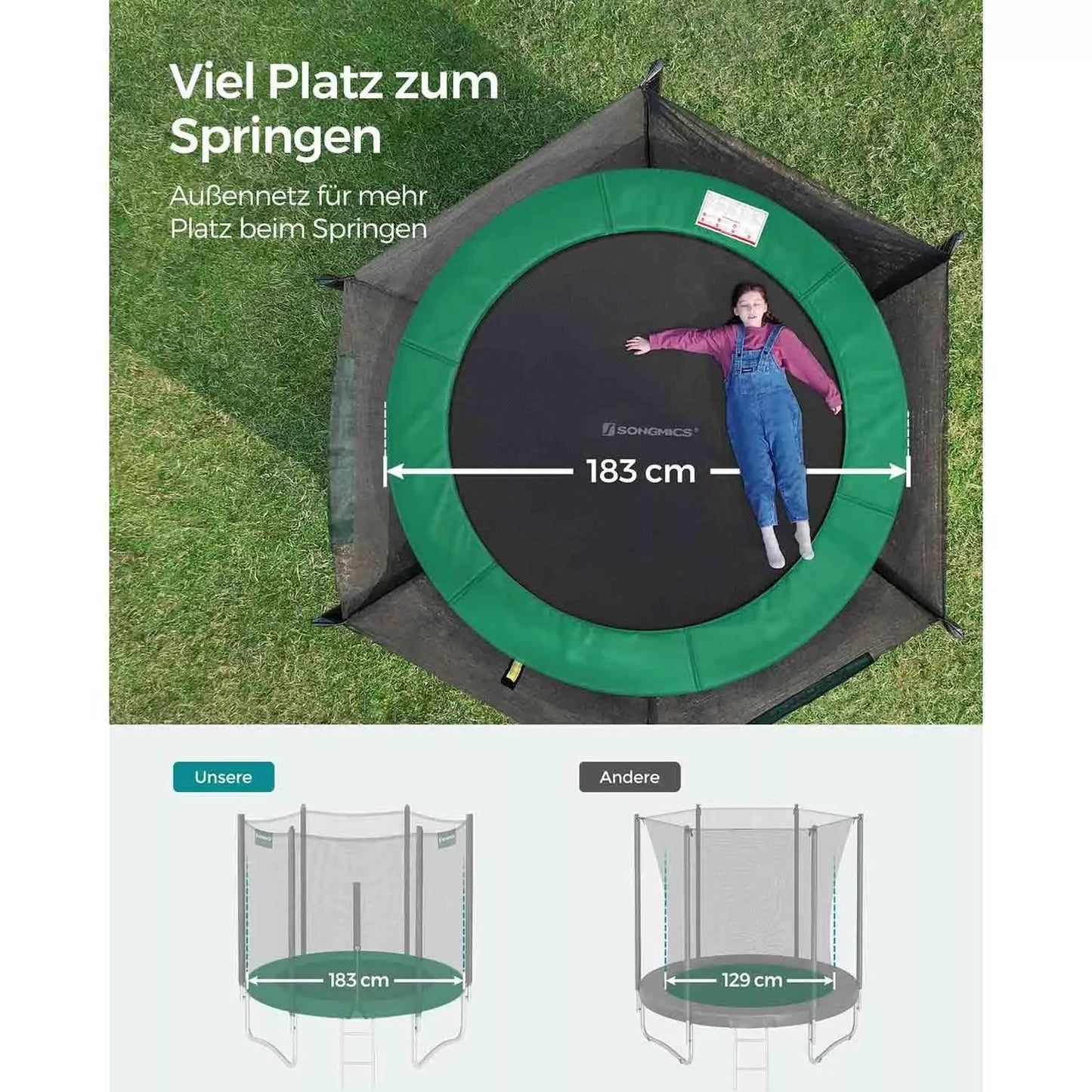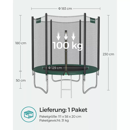 In And OutdoorMatch Trampoline Cordia - 183 cm groen - met veiligheidsnet & ladder - tot 100 kg belasting