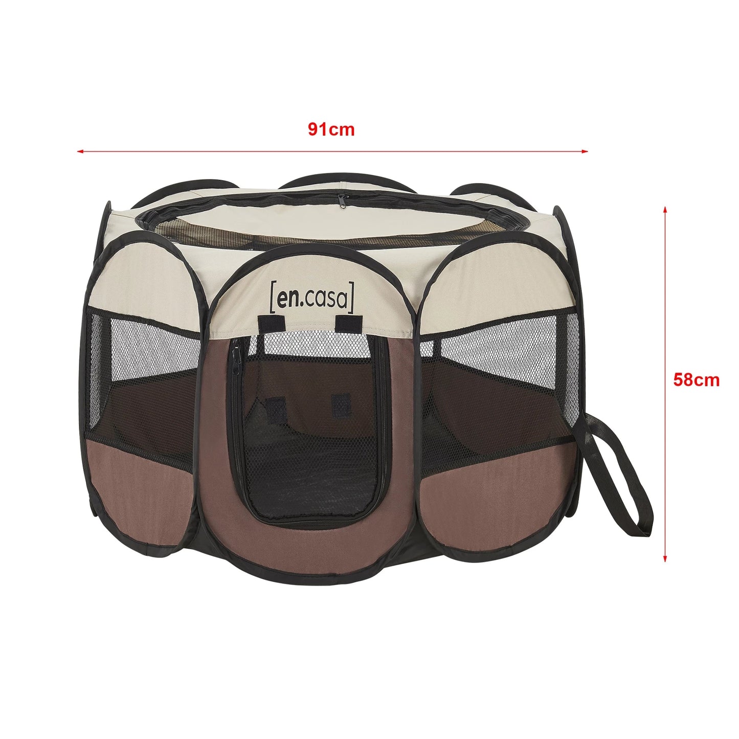 In And OutdoorMatch Uitklapbench Luna - 58x91x91 cm - Voor Dieren - Bruin en Crème - Hondenbench - Kattenbench - Dierenbench