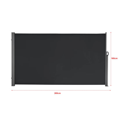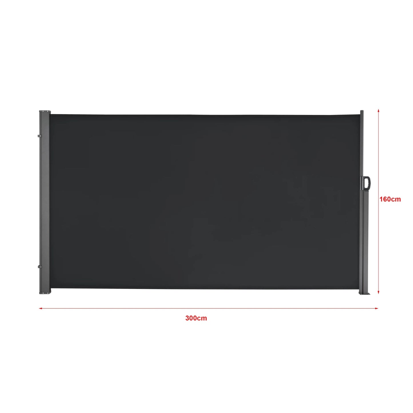 In And OutdoorMatch Windscherm Sierra - Uitschuifbare Zijluifel - 300x160 cm - Antraciet en Zwart - Staal en Stof