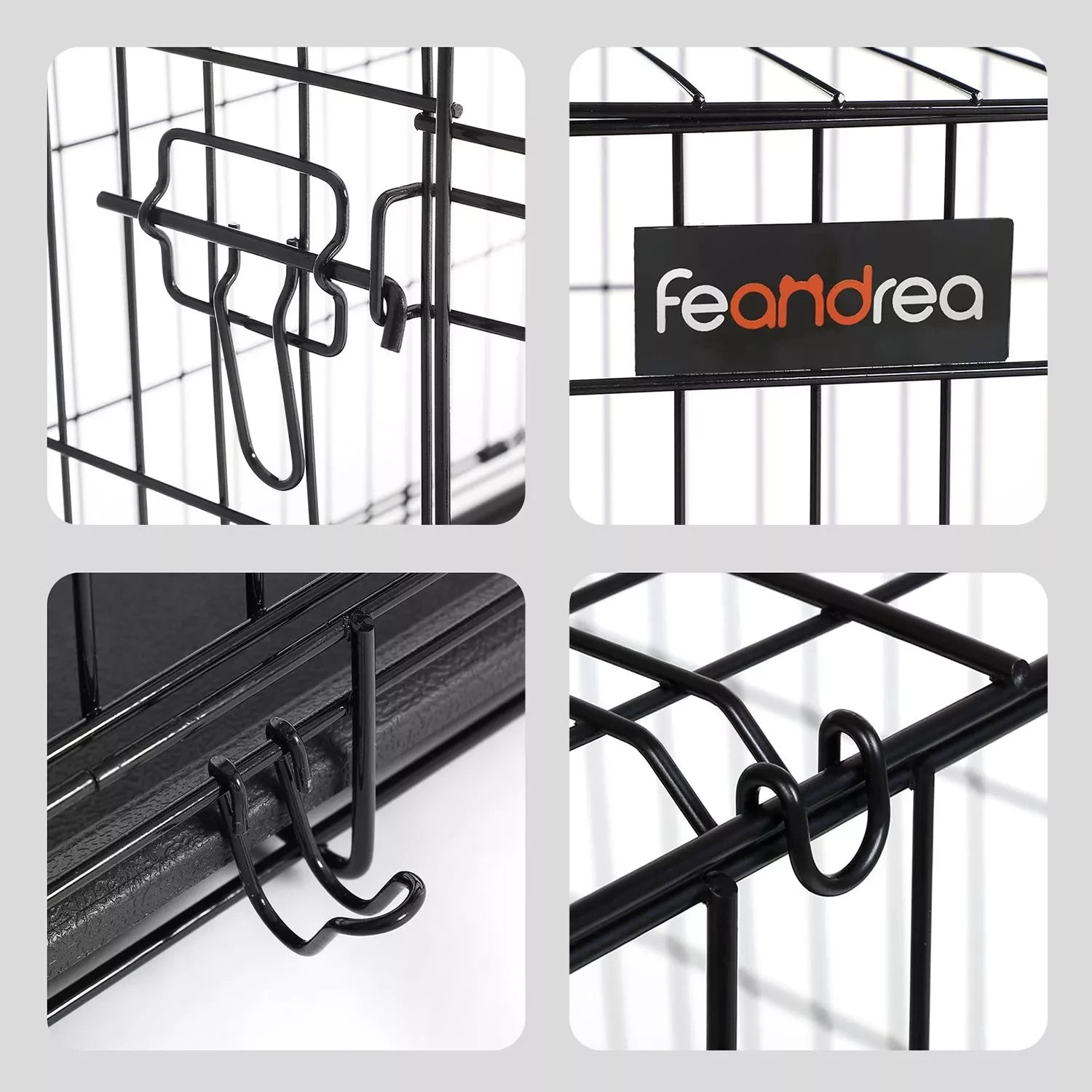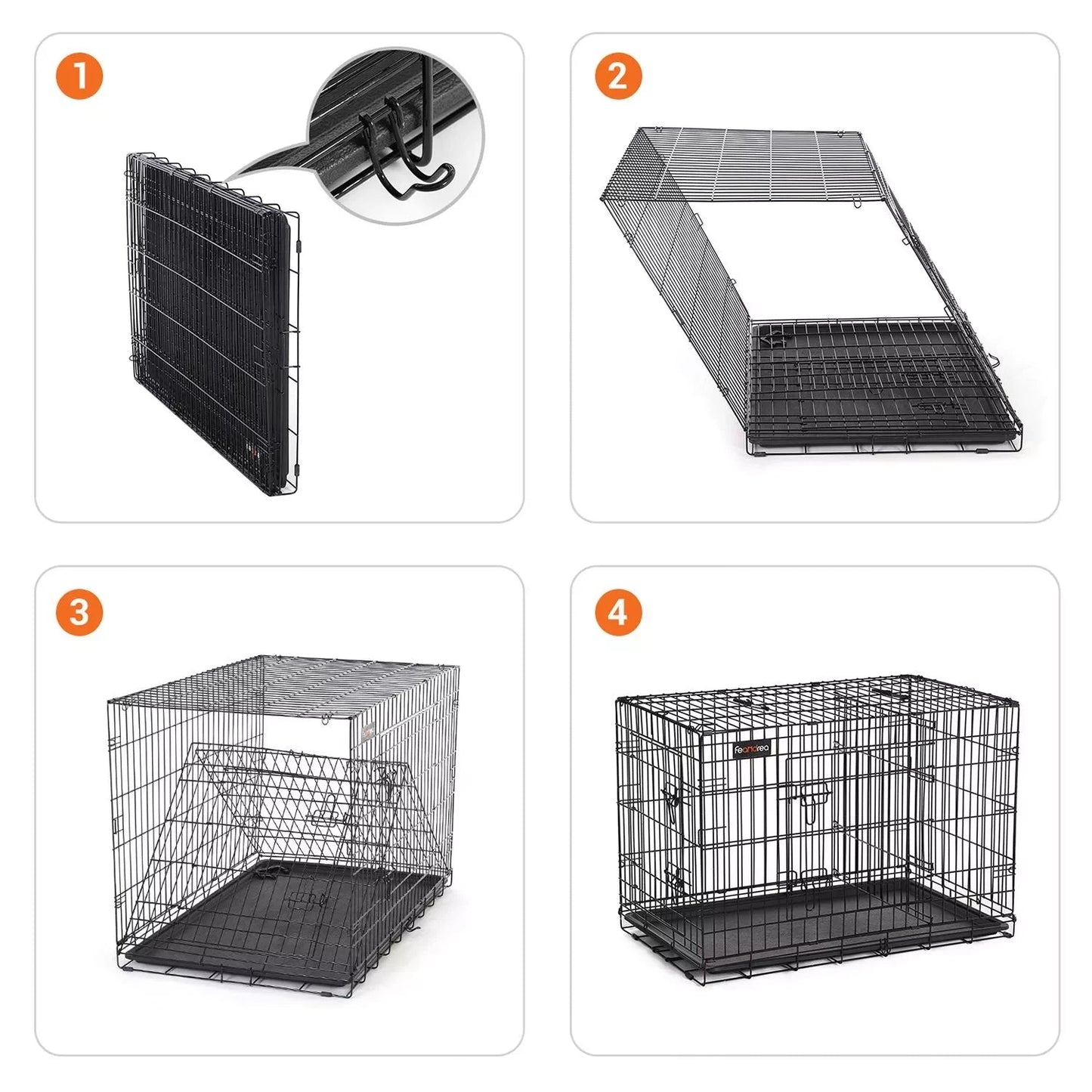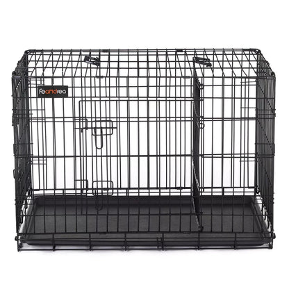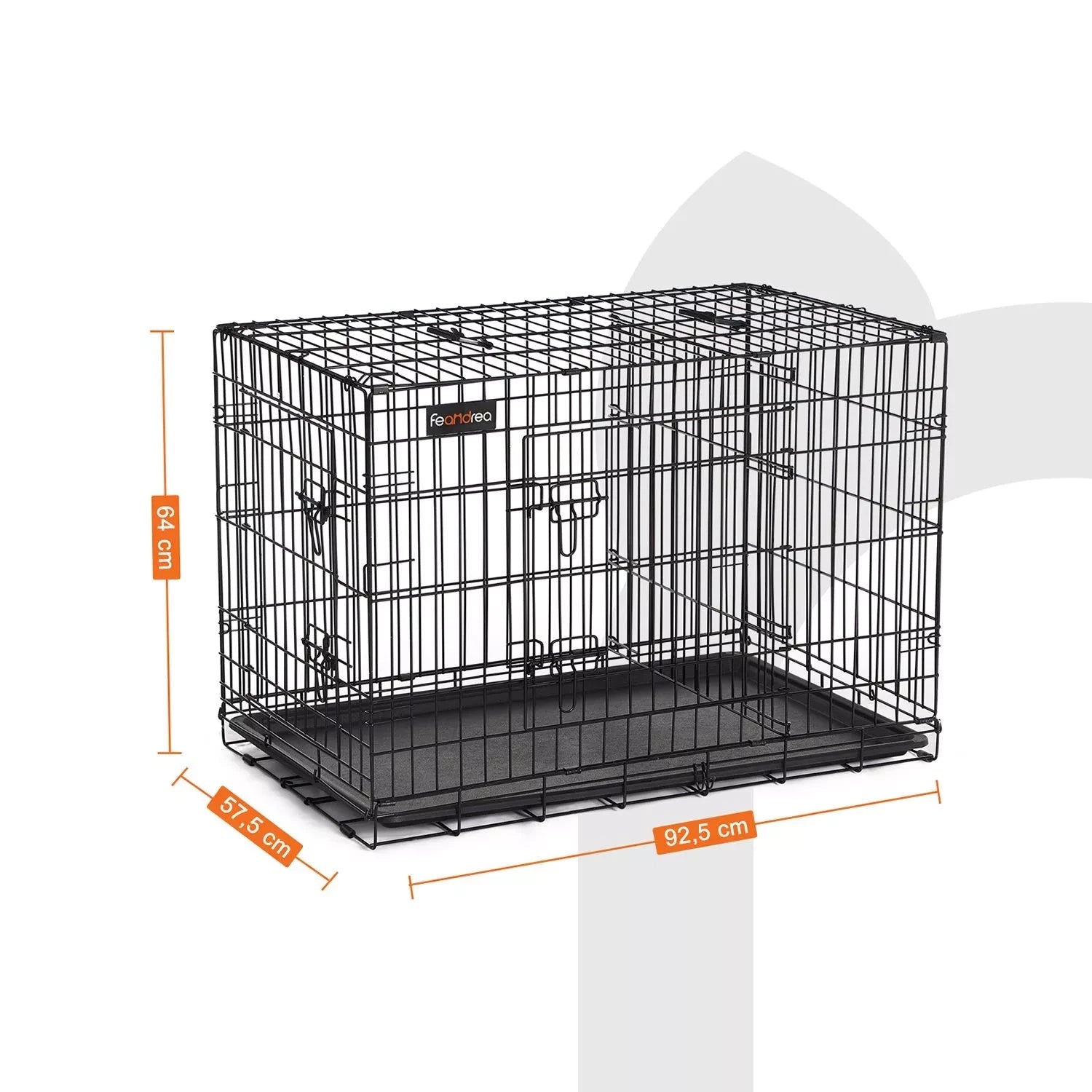 Productomschrijving: Honden en katten moeten normaal gesproken vrij door uw huis kunnen ravotten. In sommige situaties is het gebruik van deze huisdierenkooi van 92,5 x 57,5 x 64 cm echter zinvol. Waarom een hondenkooi gebruiken? - Uw hond heeft de neiging om een puinhoop van uw huis te maken als u niet thuis bent. - Uw hond heeft een toevluchtsoord nodig om uit te rusten. Rust de reismand in dit geval uit met zachte dekens. Uw huisdier is bang voor vreemden en heeft een plek nodig waar hij zich veilig kan voelen. Dierenliefhebbers verwachten daarnaast de volgende voordelen: - Eenvoudige montage zonder gereedschap - Inklapbaar; gemakkelijk transport; kan ruimtebesparend worden opgeborgen - 2 afsluitbare deuren - Bestaat uit gepoedercoat ijzerdraad zonder scherpe randen; stabiel, roestbestendig, veilig- Plastic omhulsels om uw vloer te beschermen- Uittrekbare plastic bak; maakt het schoonmaken van de roosterkast gemakkelijker - Verwijderbare scheidingswand Productdetails: - Kleur: Zwart - Materiaal: ijzerdraad - Afmetingen: 92,5 x 57,5 x 64 cm (L x B x H) - Gewicht: 10,8 kgOpmerkingen: - Bij gebruik in Bescherm buiten gebieden waar het regent. - Ga niet staan, zitten of iets op de doos plaatsen. - De doos is geen speelgoed, zorg ervoor dat kinderen niet in de hondenkooi komen of spelen. - Zorg ervoor dat de halsband van het huisdier niet verstrikt raakt of blijft haken aan de hondenkooi. binnenkant van de doos tijdens transport. - Door handmatige meting kunnen afwijkingen van ongeveer 1-2 cm optreden. Voordat u koopt, meet u zorgvuldig de maat